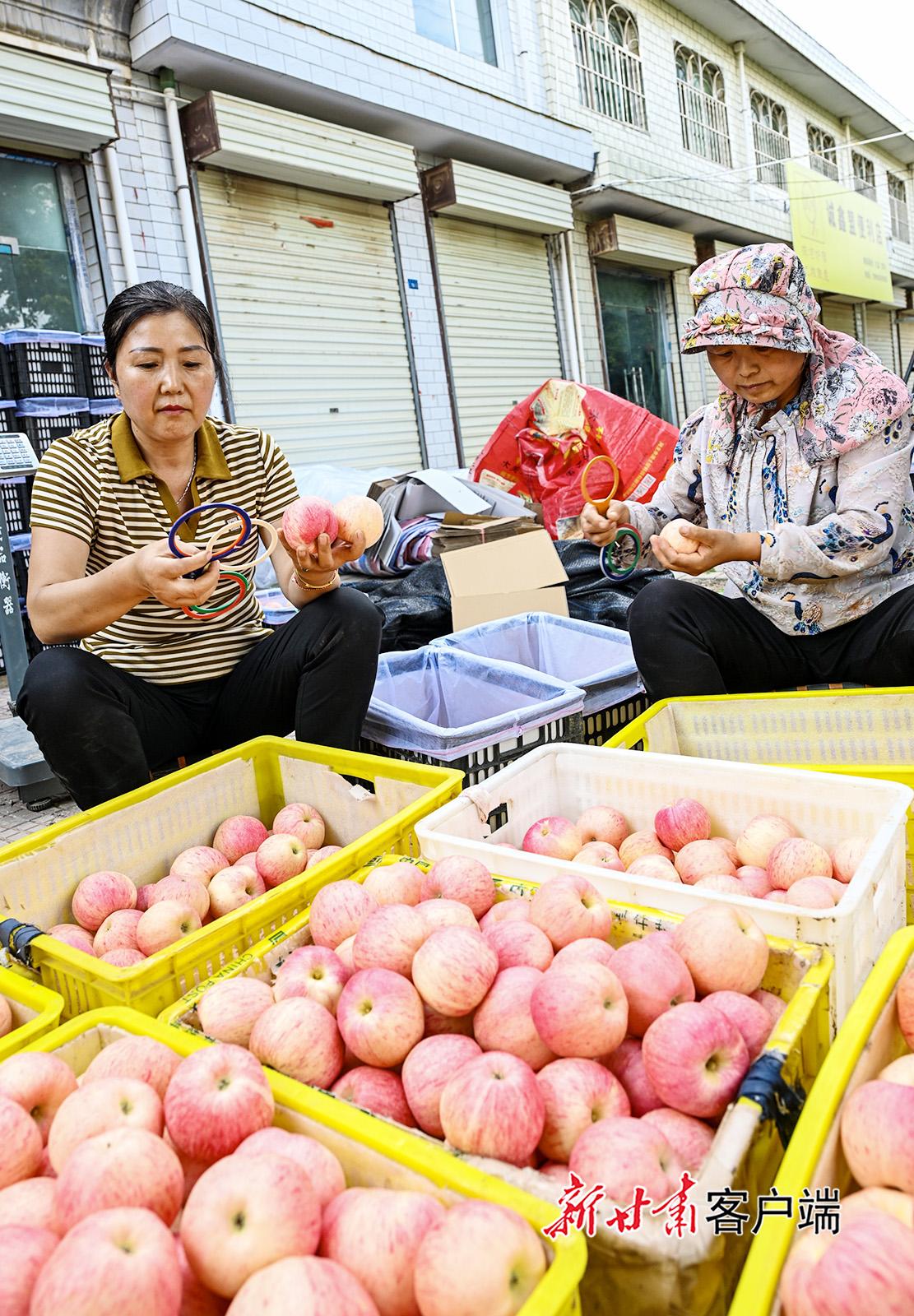 8月22日,正寧縣湫頭鎮(zhèn)的果農(nóng)正在采摘、分揀早熟嘎啦蘋果,目前湫頭鎮(zhèn)的嘎啦蘋果陸續(xù)進(jìn)入采摘期。