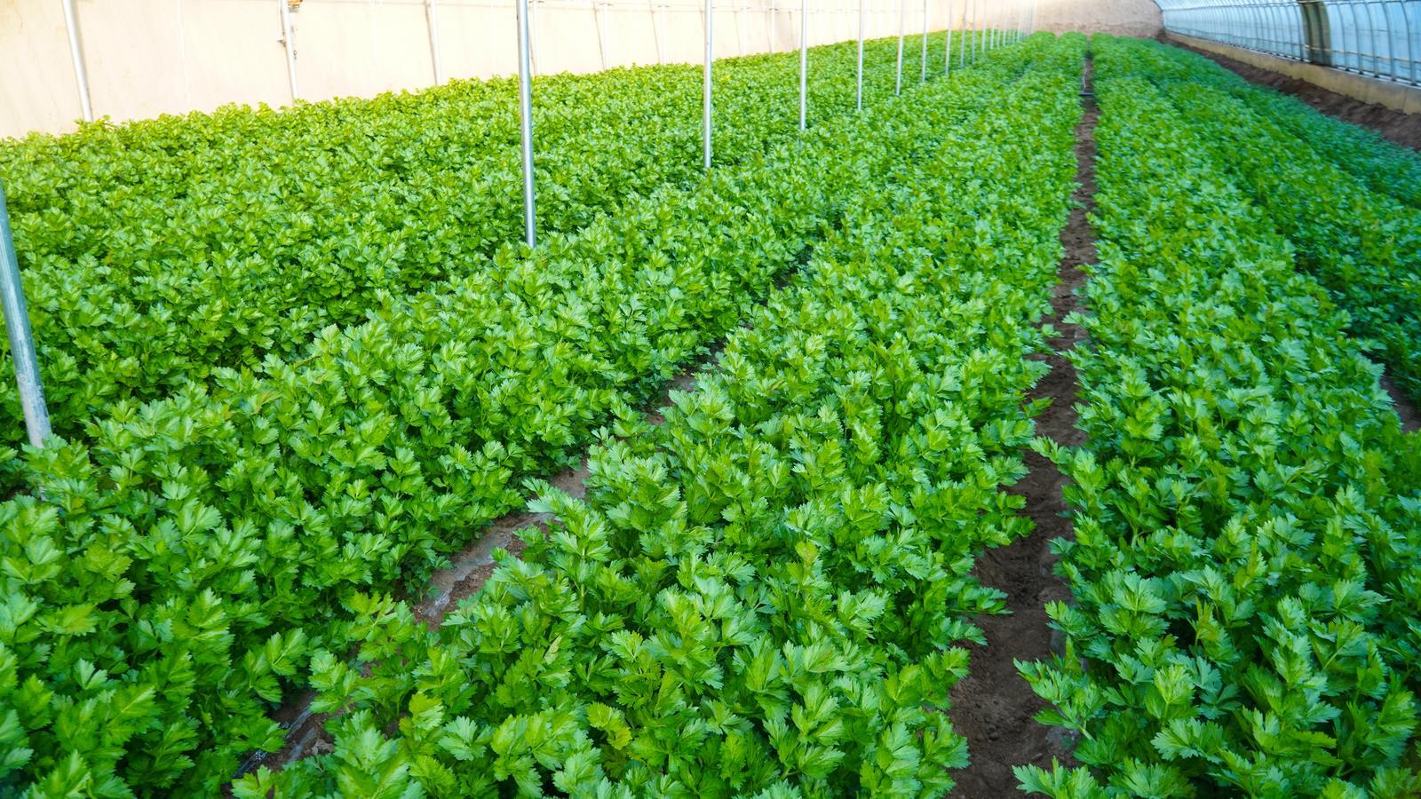 玄馬鎮(zhèn)高效農(nóng)業(yè)產(chǎn)業(yè)園的溫室大棚內(nèi),芹菜長勢旺盛。 慶陽融媒記者 李云 攝