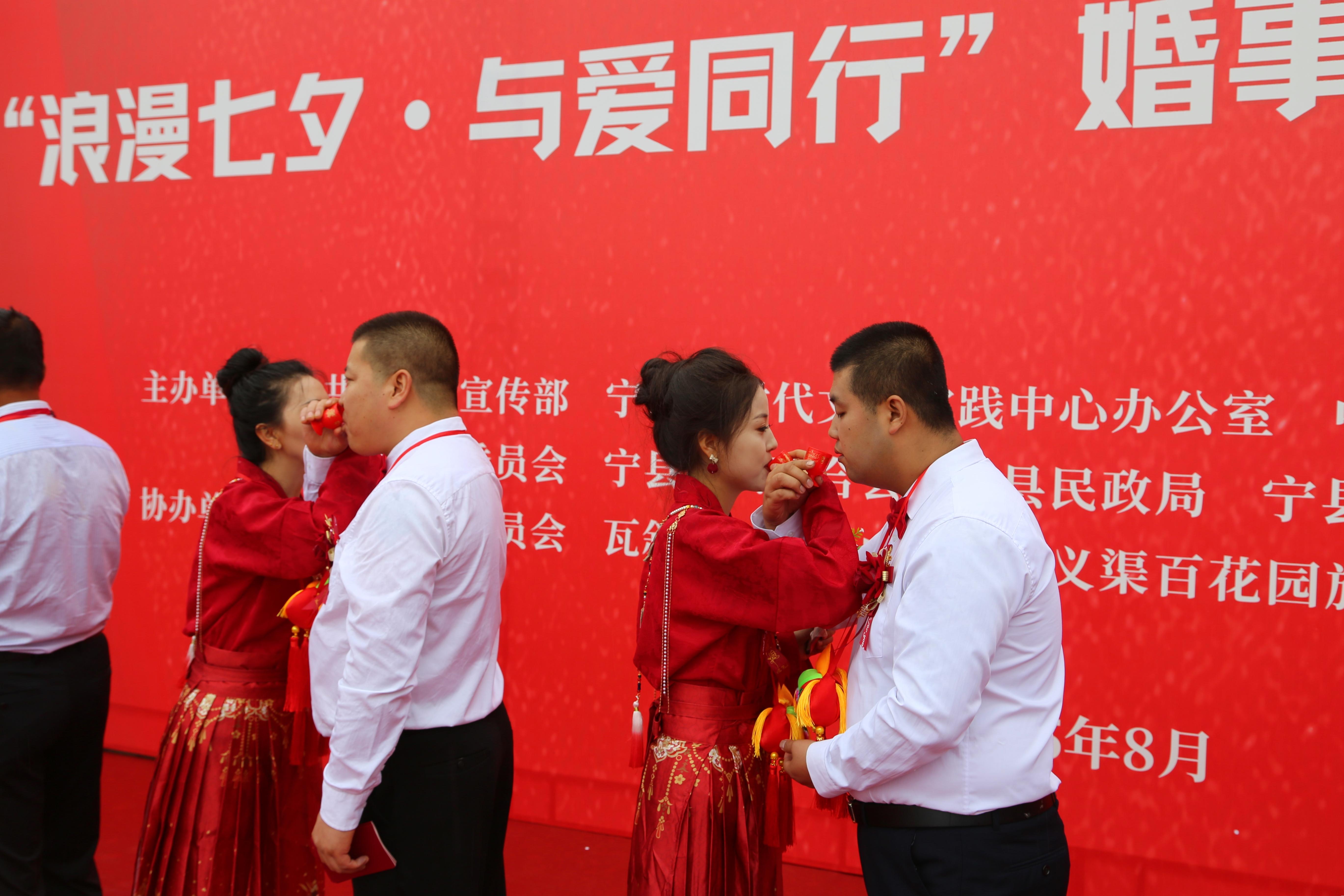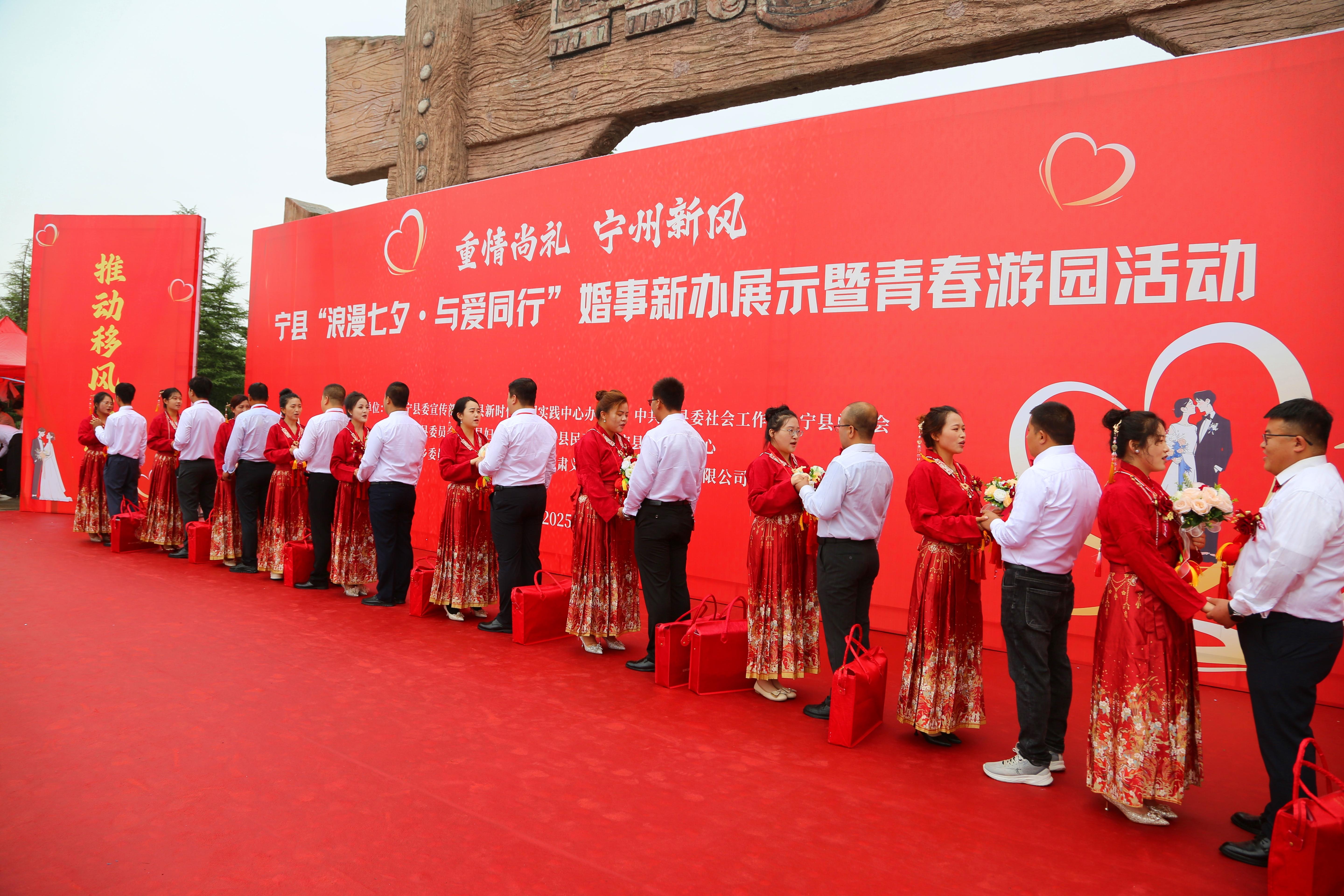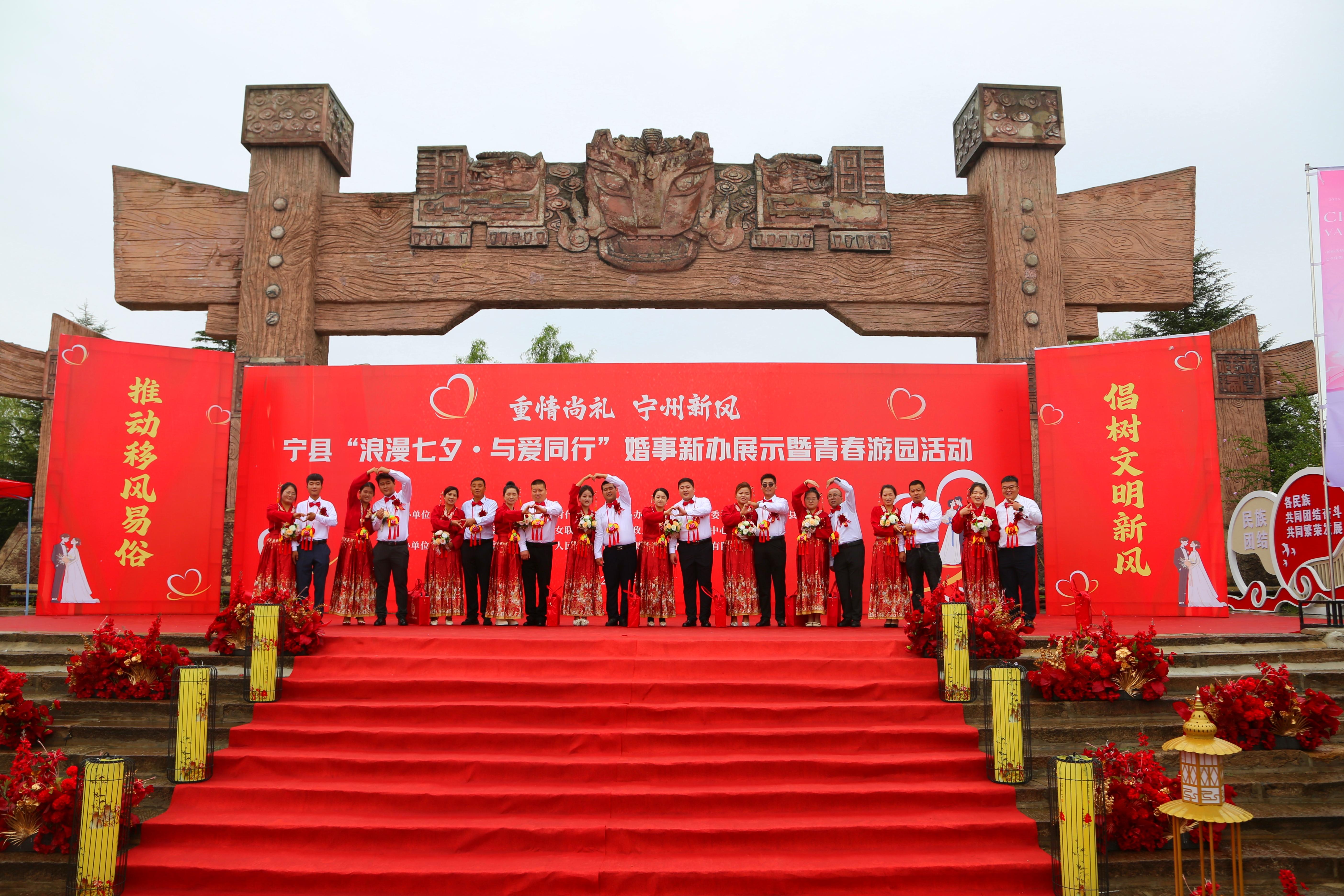 情定義渠花海間,崇尚新風共百年。8月28日,七夕佳節(jié)之際,一場以“重情尚禮 寧州新風”為主題的“浪漫七夕·與愛同行”婚事新辦展示暨青春游園活動在寧縣義渠百花園景區(qū)舉行。10對新人在親友和當?shù)馗刹咳罕姷墓餐娮C下喜結(jié)連理,以實際行動踐行婚俗新風尚。