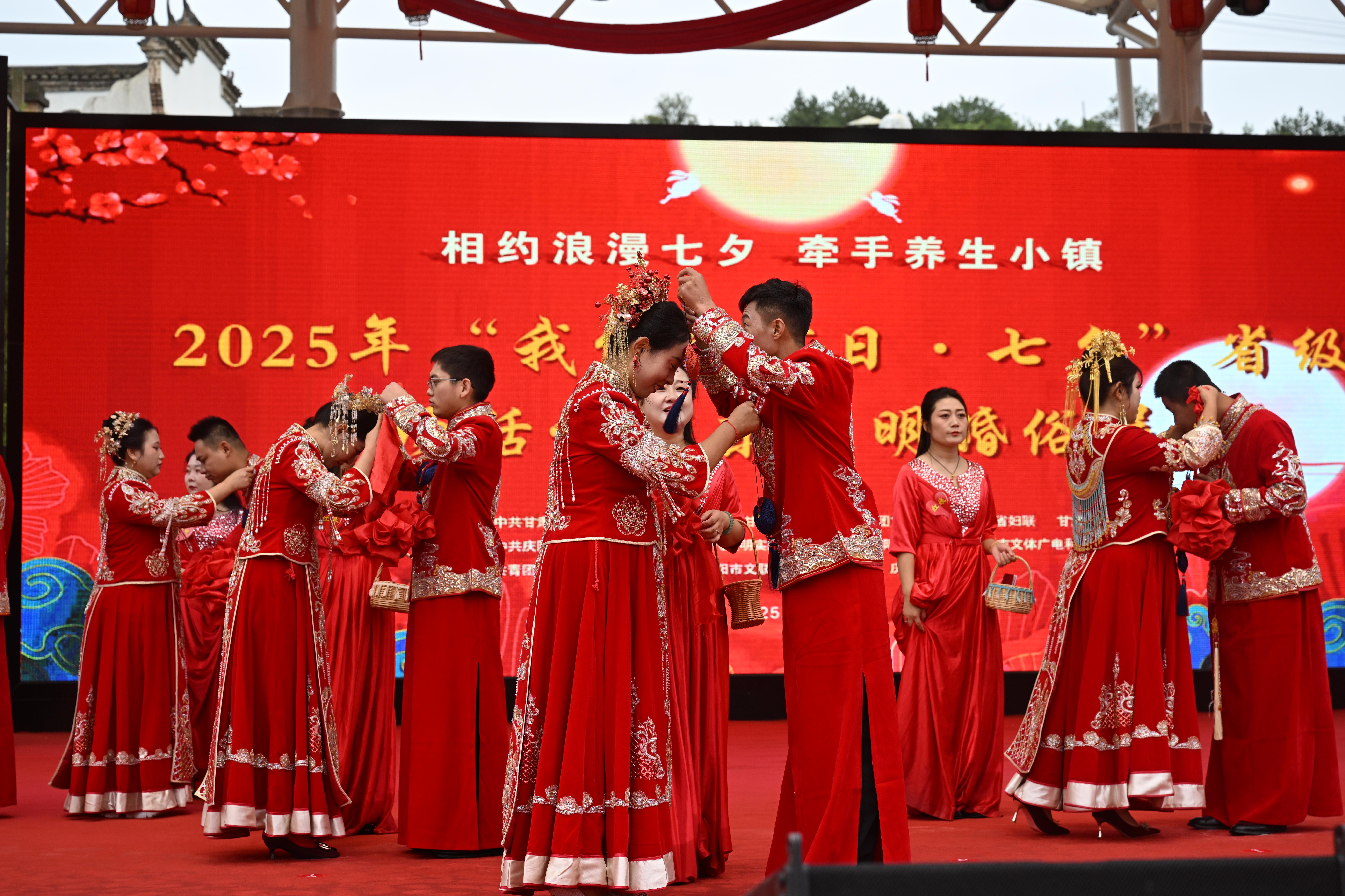 愛在慶陽,幸福七夕。8月29日,由省委宣傳部、省民政廳、省文旅廳、團(tuán)省委、省婦聯(lián)、省文聯(lián)聯(lián)合主辦,中共慶陽市委宣傳部、慶陽市新時(shí)代文明實(shí)踐中心辦公室、慶陽市民政局、慶陽市文旅局、共青團(tuán)慶陽市委、慶陽市婦聯(lián)、慶陽市文聯(lián)、中共慶城縣委、慶城縣人民政府承辦的2025年甘肅省“我們的節(jié)日·七夕”省級主場活動在慶陽市慶城縣舉辦。