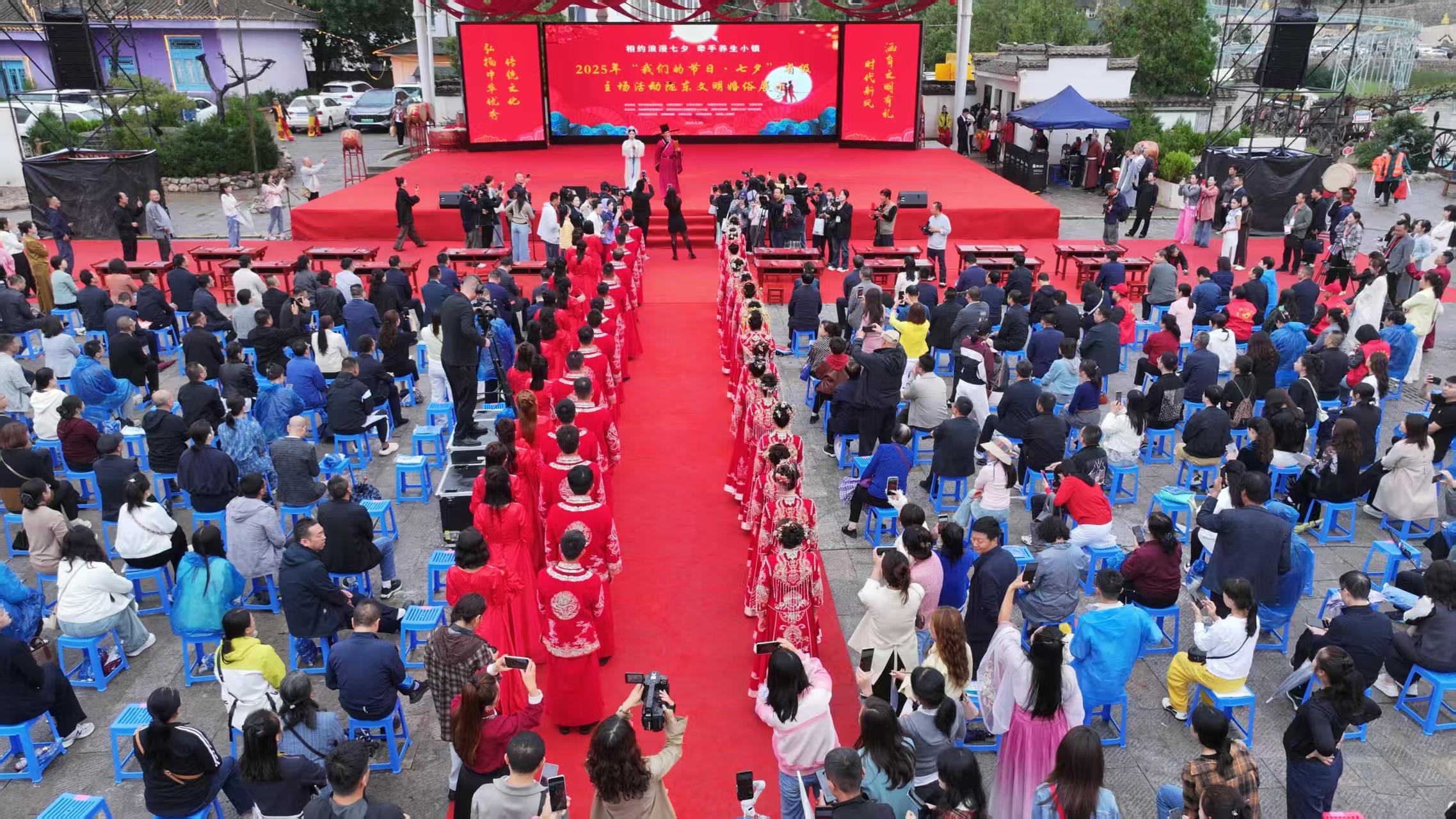 省直及慶陽市有關(guān)單位負(fù)責(zé)同志,慶城縣委、縣政府和相關(guān)部門負(fù)責(zé)同志,各縣(區(qū))委宣傳部及文明實(shí)踐辦負(fù)責(zé)同志,十多對新人及親友,慶陽道德模范、身邊好人、隴人驕子、好婆婆好媳婦等先進(jìn)典型代表,慶城縣各界干部群眾代表、志愿服務(wù)隊(duì)伍,相關(guān)媒體記者和網(wǎng)紅達(dá)人共計(jì)800余人,相聚藥王洞養(yǎng)生小鎮(zhèn),共赴一場浪漫七夕文明之約。