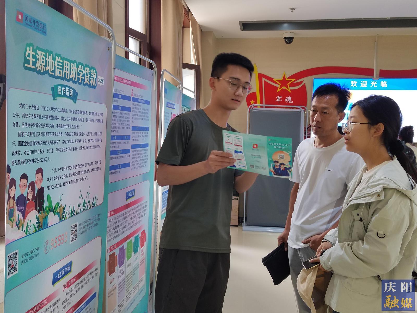 工作人員為學(xué)生和家長講解助學(xué)貸款政策。