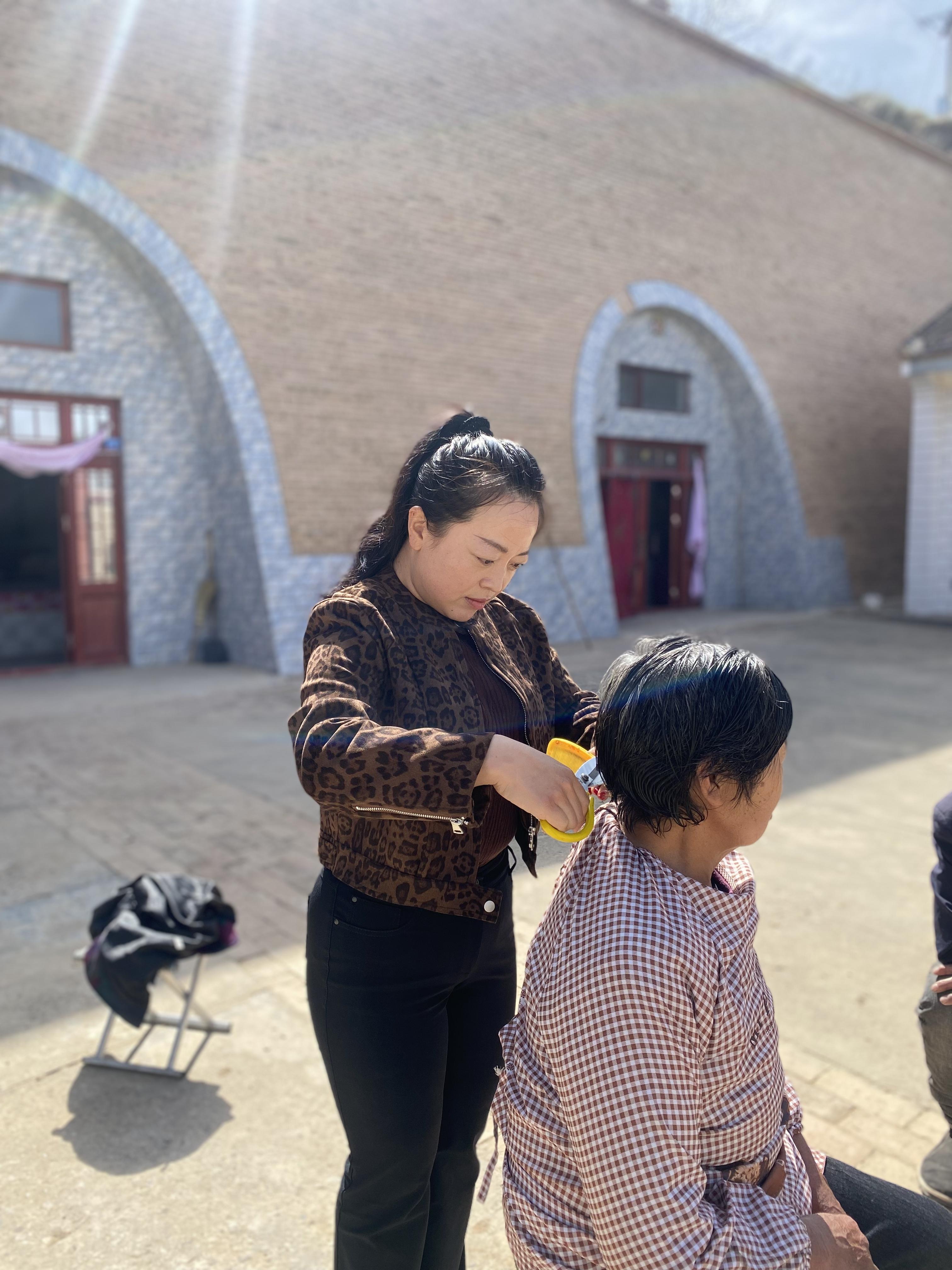 走訪中,谷秀娟發(fā)現(xiàn)村里許多老人行動不便,理發(fā)成了大難題。她立即買來推子、剪刀、圍布,通過視頻自學(xué)理發(fā)技術(shù)。
