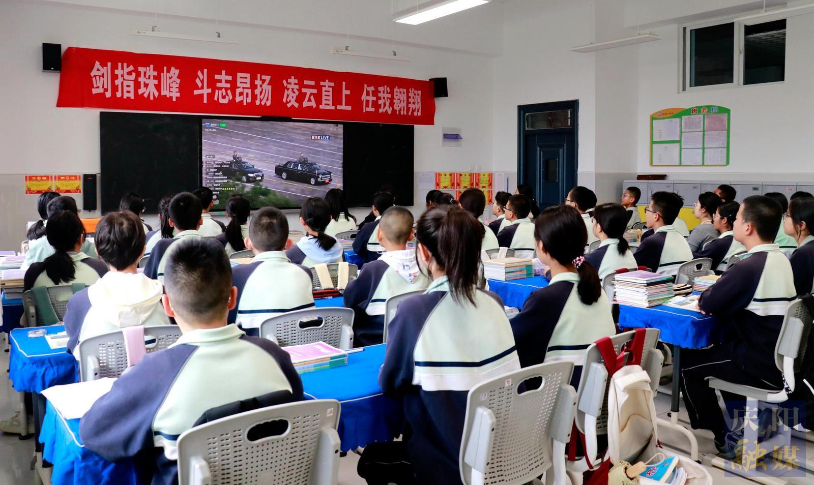 慶陽四中師生收看九三閱兵直播。慶陽融媒記者 陳飛 攝