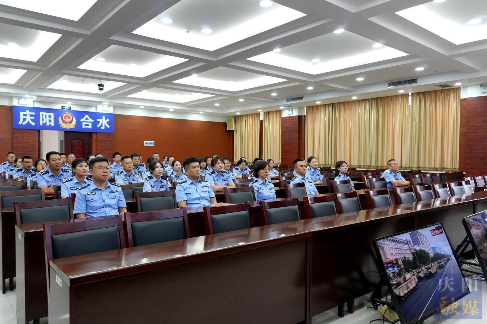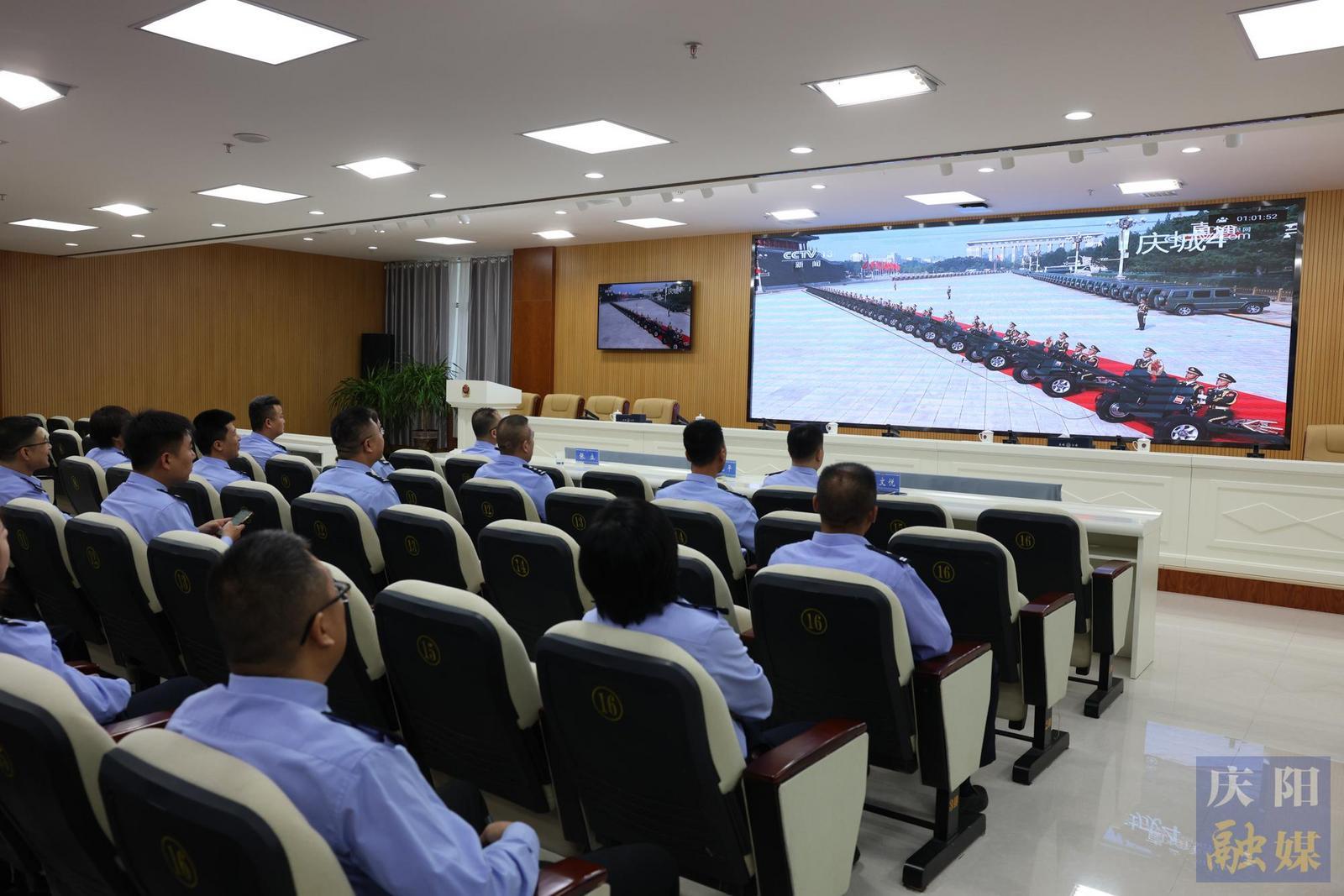 合水縣公安局黨員干部收看九三閱兵直播。慶陽融媒記者 陸洋 攝