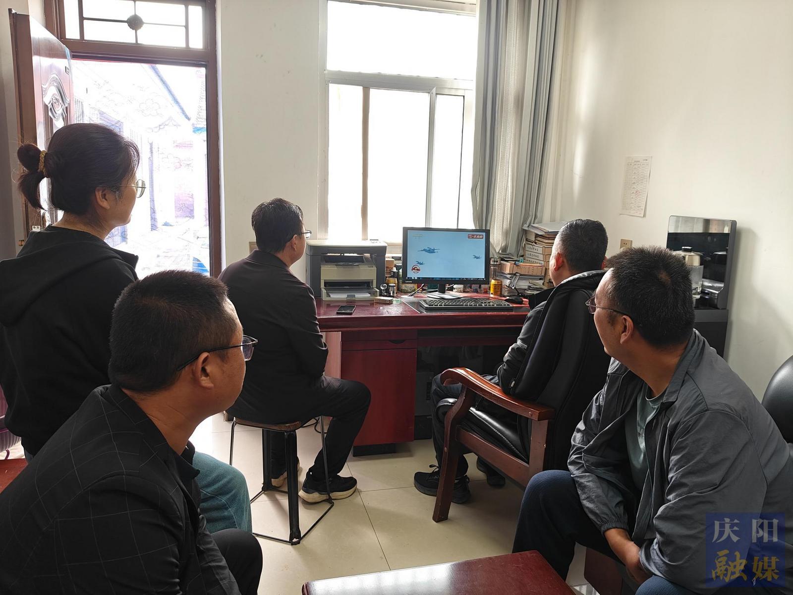 寧縣融媒體中心干部職工收看九三閱兵直播。特約攝影 李建琪攝