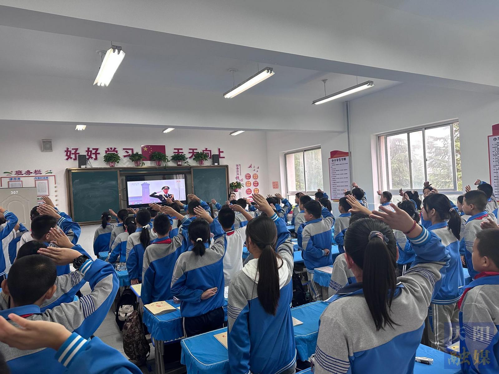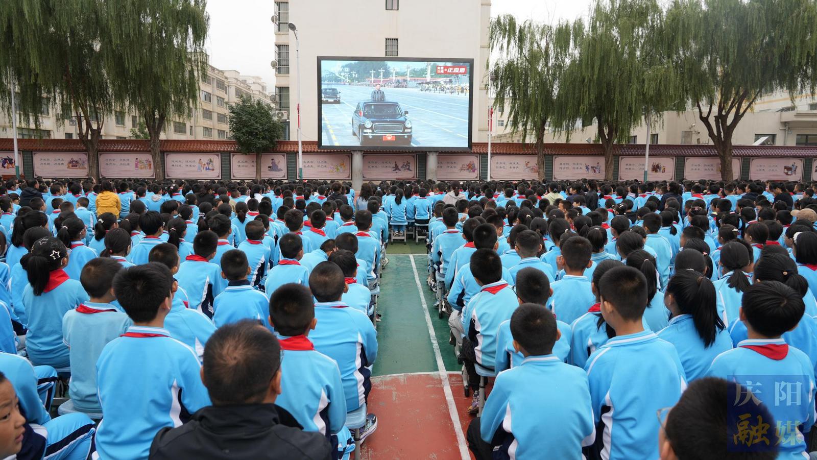 西峰區(qū)學(xué)院路實(shí)驗(yàn)學(xué)校師生收看九三閱兵直播。慶陽融媒記者 耿洋洋 攝