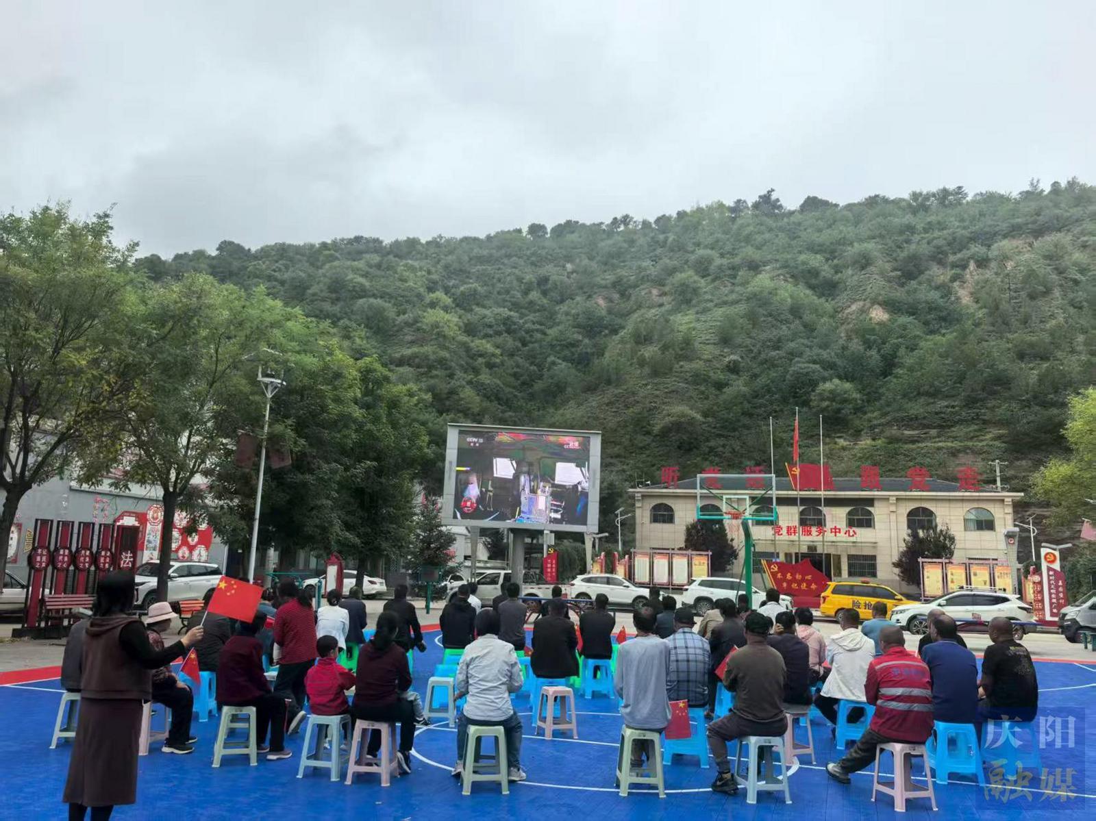 鎮(zhèn)原縣新集鎮(zhèn)永豐村干部群眾收看九三閱兵直播。通訊員 田永昭 攝