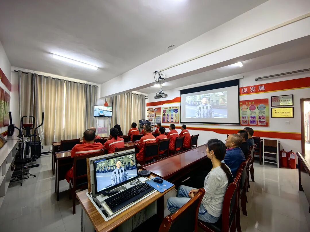 長(zhǎng)慶油田第二采油廠黨員干部一同收看直播。