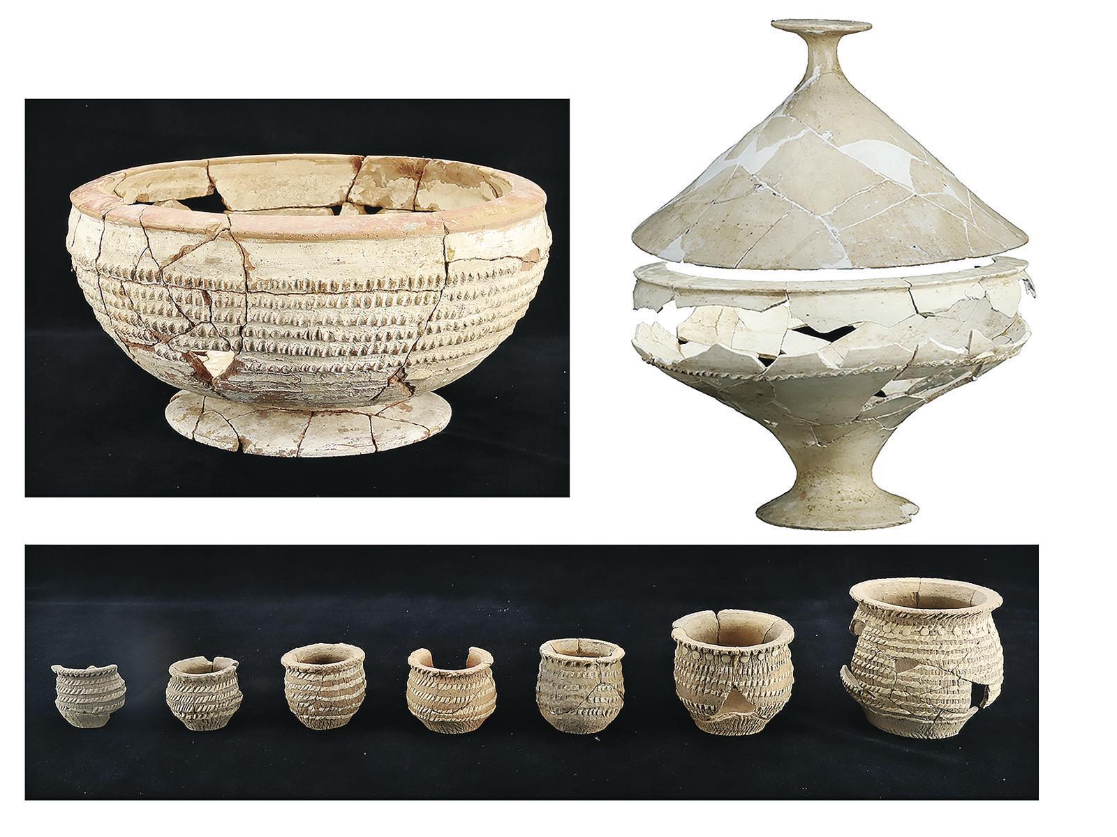 南佐遺址出土的陶簋、白泥堆紋陶罐 (資料圖)