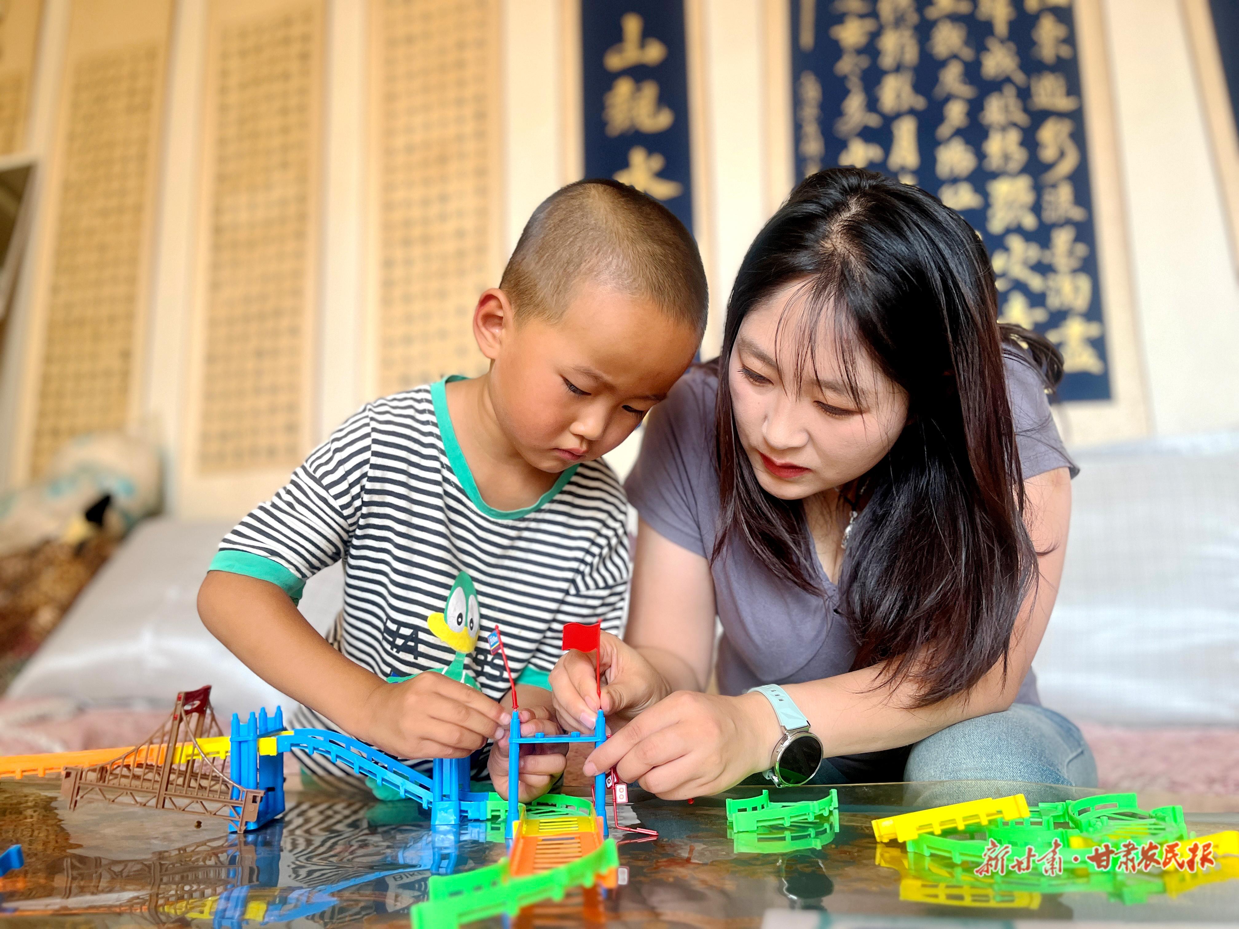 何娜娜陪結(jié)對關(guān)愛兒童玩玩具。
