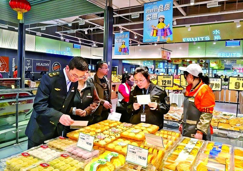 華池縣市場監(jiān)管局執(zhí)法人員對商超食品進行檢查。 通訊員 高興財 攝