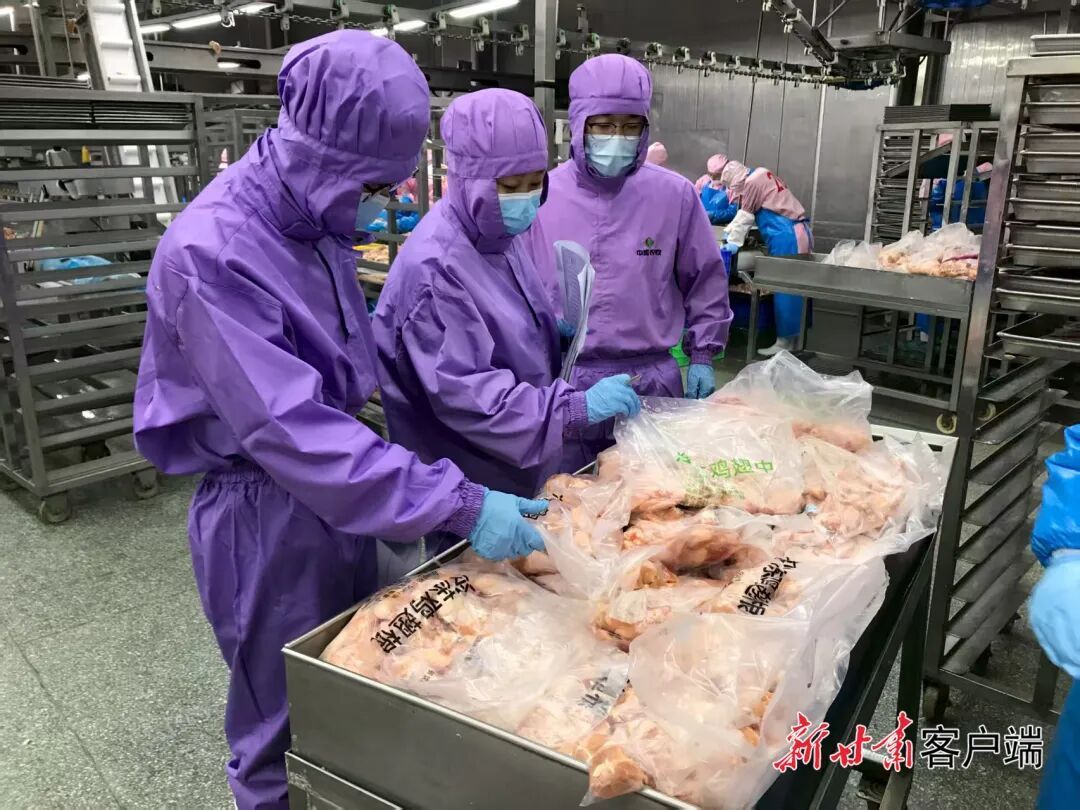 蘭州海關(guān)所屬平?jīng)龊jP(guān)關(guān)員對(duì)出口禽肉開(kāi)展檢疫采樣工作。周龍