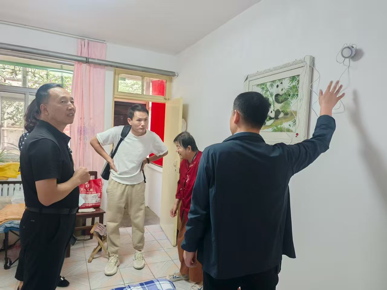 “這個(gè)設(shè)備叫一氧化碳報(bào)警方器,火爐出現(xiàn)漏煤煙或者哪著火冒煙,它就會(huì)發(fā)出警報(bào)聲;這個(gè)設(shè)備叫SOS雙向語(yǔ)音呼叫報(bào)警器,如果你身體突然不舒服了,就按這個(gè)按紐或者拉這個(gè)繩子,它就能自動(dòng)拔打你侄子的電話;這個(gè)設(shè)備叫人體紅外報(bào)警器,如果設(shè)備8小時(shí)探測(cè)不到你人,能自動(dòng)向您監(jiān)護(hù)人預(yù)警;這個(gè)設(shè)備叫跌倒監(jiān)測(cè)雷達(dá),你跌倒后5秒鐘還不能站起身,設(shè)備就會(huì)向您監(jiān)護(hù)人預(yù)警,非常智能,也非常方便?!卑惭b人員一邊講解設(shè)備用途,一邊現(xiàn)場(chǎng)示范,每安裝一戶,都要實(shí)測(cè)設(shè)備是否能正常運(yùn)行。
