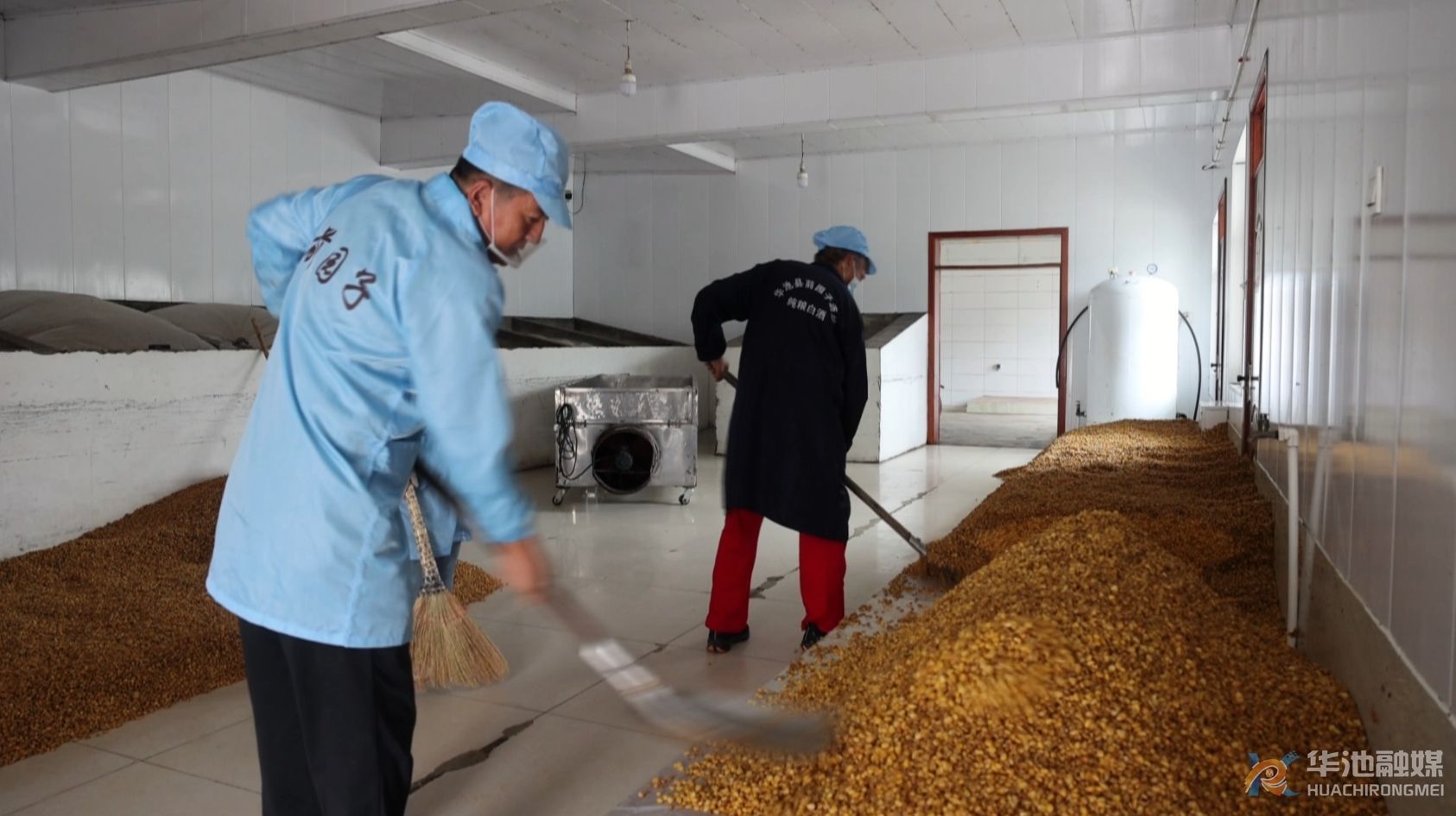 清晨的店坪村,陽光灑滿玉米地,前園子酒坊內已是一派忙碌景象。蒸汽升騰間,工人忙著蒸煮糧食,導管出口不斷沁出晶瑩酒液,釀酒師傅俯身查看流速、測定溫度,王明照則和工人們一起翻拌著糖化的玉米,動作嫻熟利落。“這是剛糖化好的糧食,翻拌后溫度合適了才能入池發(fā)酵。我們釀酒對溫度、濕度等每個環(huán)節(jié)要求都特別嚴,當過兵的人就認‘較真’二字,每個環(huán)節(jié)都不能含糊?!蓖趺髡盏脑捳Z里,滿是軍人特有的嚴謹。