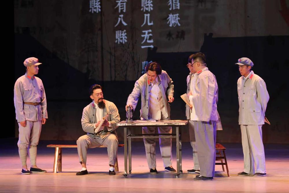 2025年9月17日,“紅星照耀中國·‘兩點(diǎn)一存’耀華夏”網(wǎng)絡(luò)主題宣傳活動(dòng)在甘肅慶陽啟動(dòng)。圖為大型紅色革命題材話劇《哈達(dá)鋪的燈光》演出劇照。主辦方供圖