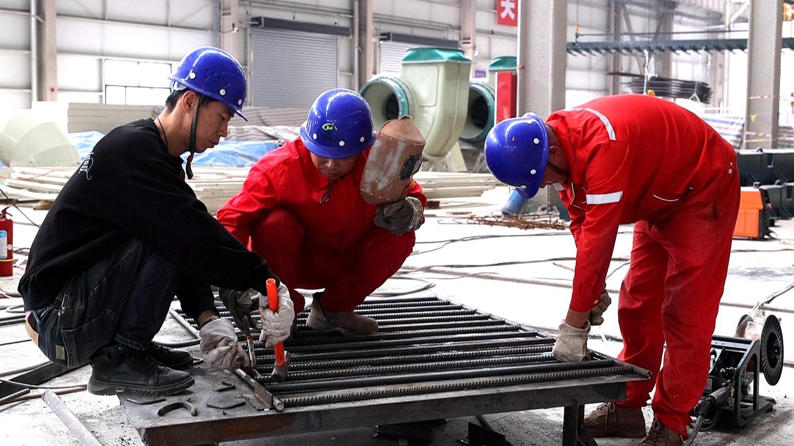 甘肅全利電力裝備有限公司廠房內(nèi),工人在加工鋼筋。通訊員 雷彩利 攝