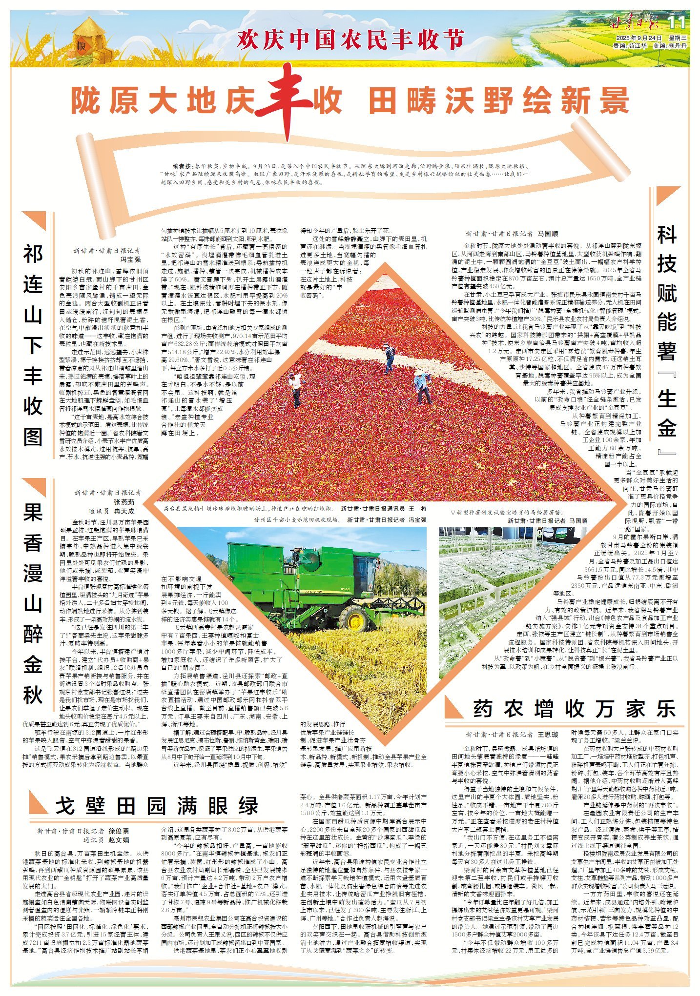 編者按:春華秋實(shí),歲物豐成。9月23日,是第八個中國農(nóng)民豐收節(jié)。從隴東大塬到河西走廊,沃野騰金浪,碩果掛滿枝,隴原大地秋糧、“甘味”農(nóng)產(chǎn)品陸續(xù)迎來收獲高峰。放眼廣袤田野,是汗水澆灌的喜悅,是耕耘孕育的希望,更是鄉(xiāng)村振興戰(zhàn)略繪就的壯美畫卷……讓我們一起深入田野鄉(xiāng)間,感受和美鄉(xiāng)村的氣息、體味農(nóng)民豐收的喜悅。