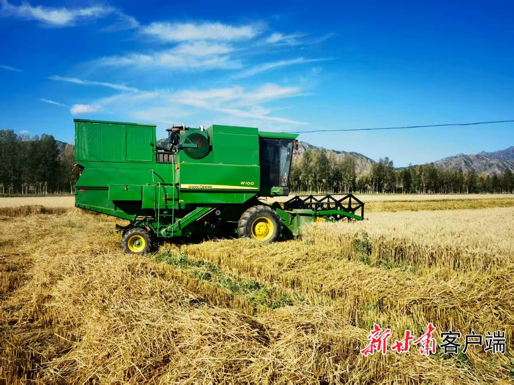 初秋的祁連山,雪峰依舊頂著皚皚白冠,而山腳下的甘州區(qū)安陽鄉(xiāng)苗家堡村的千畝麥田,金色麥浪隨風(fēng)騰涌,鋪成一望無際的金毯。兩臺大型收割機(jī)正沿著田壟緩緩前行,沉甸甸的麥穗盡入儲倉,粉碎的秸稈混著泥土香,在空氣中散漫出淡淡的秋意和豐收的味道——這豐收,藏在飽滿的麥粒里,也藏在新技術(shù)里。