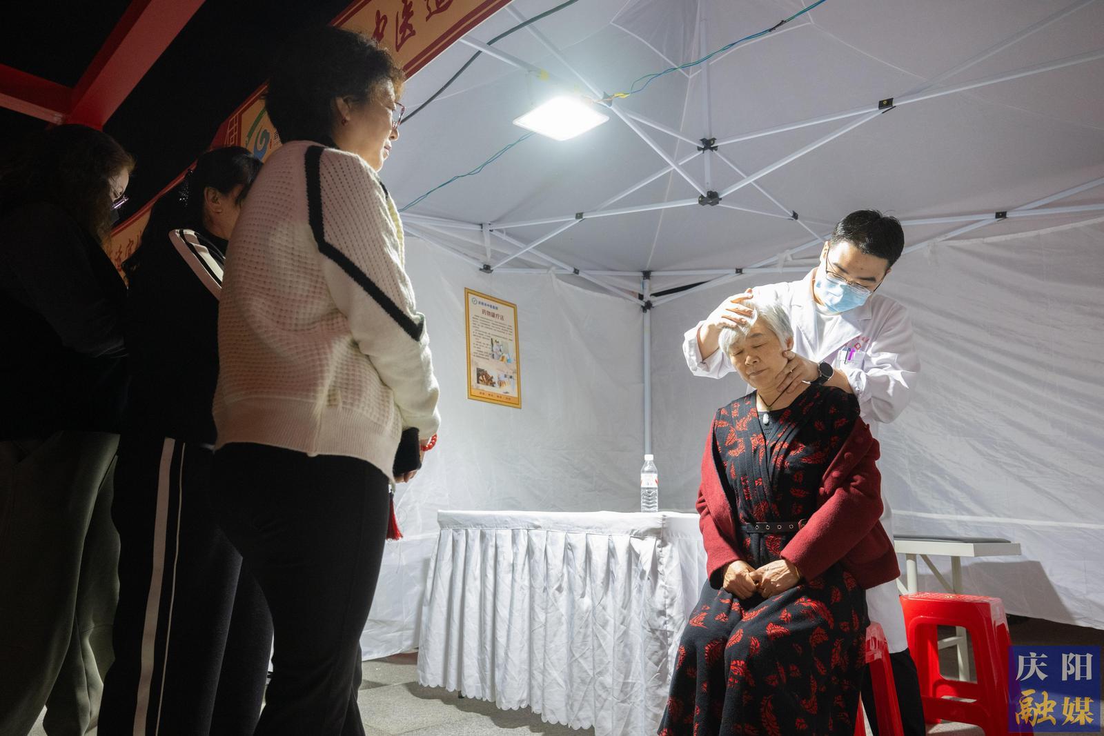 中醫(yī)適宜技術(shù)體驗(yàn)區(qū)的醫(yī)生為患者現(xiàn)場(chǎng)推拿。