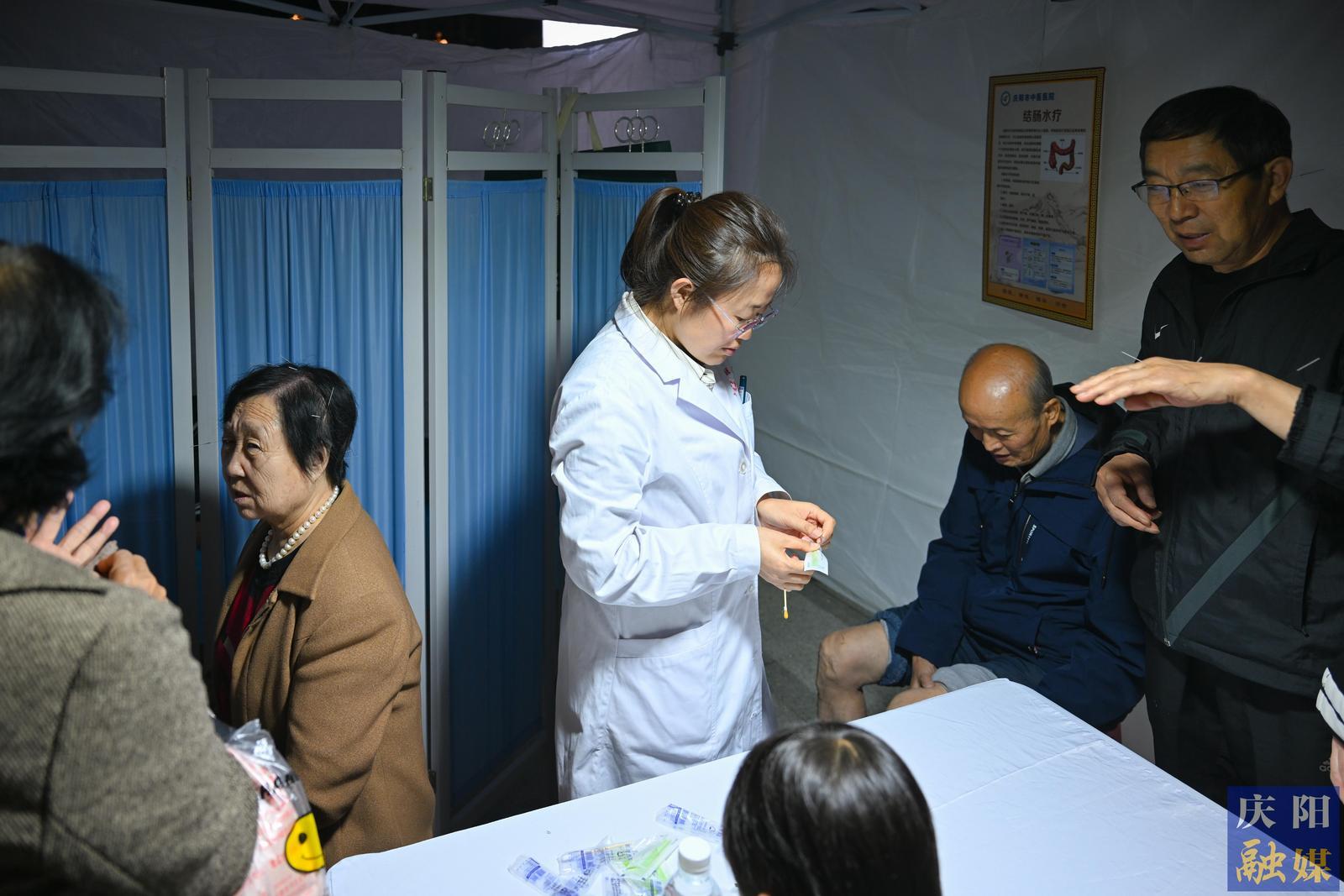 中醫(yī)適宜技術(shù)體驗(yàn)區(qū)的醫(yī)生為患者現(xiàn)場(chǎng)針灸。