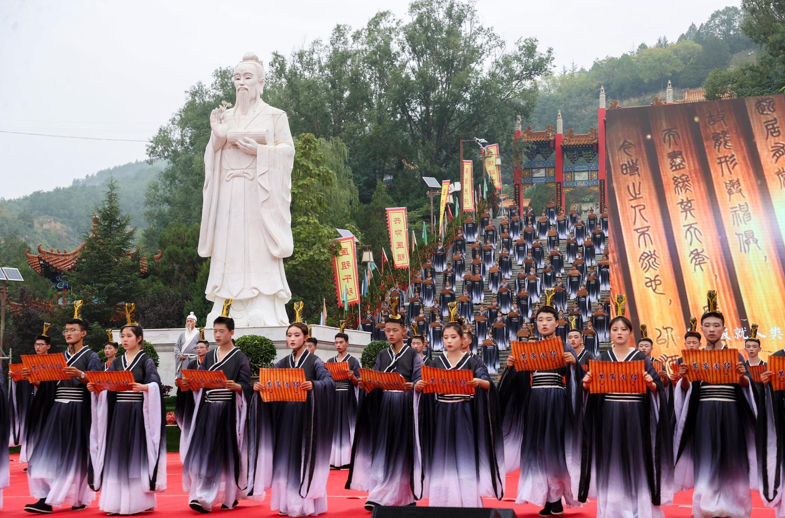 集體誦讀《黃帝內(nèi)經(jīng)》。
