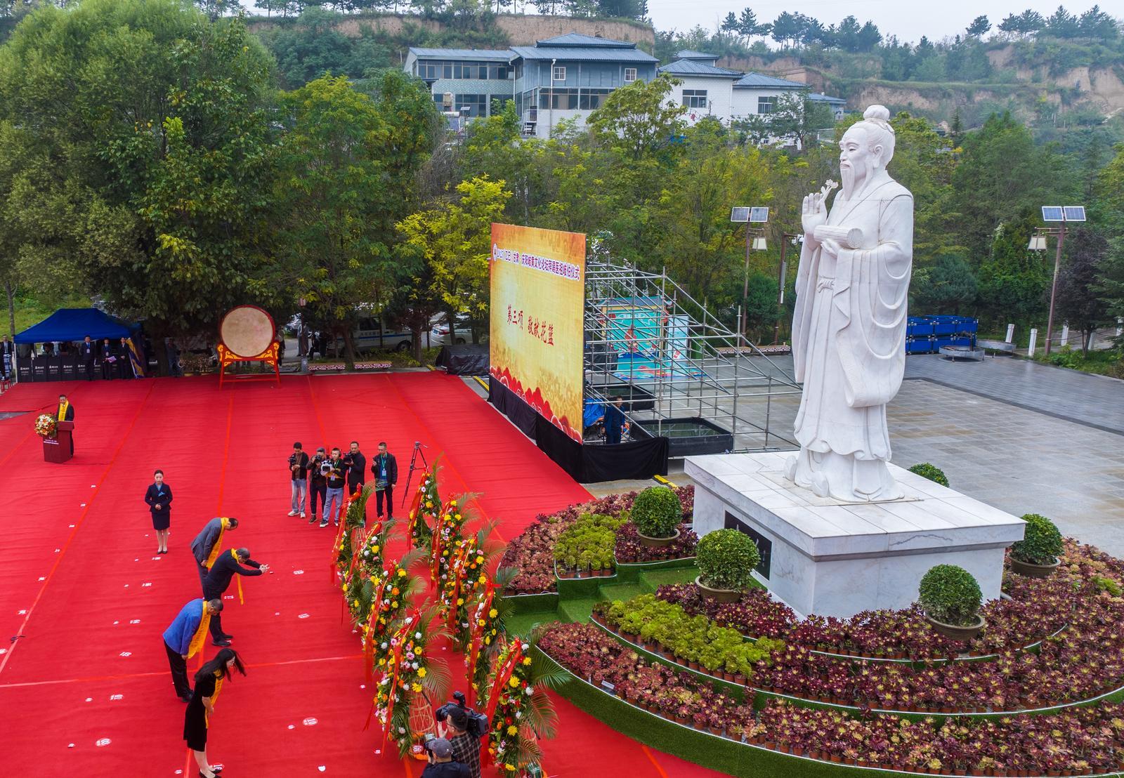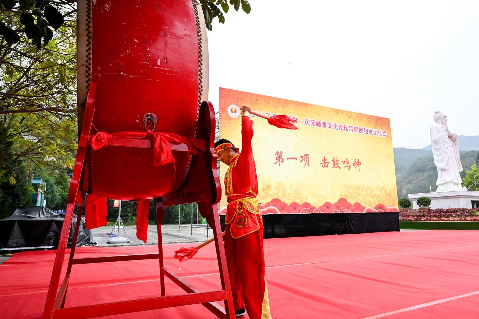 東山巍巍,馬蓮湯湯。岐伯廣場松柏挺拔、旗幡列張,杏林翹楚、海外華裔、各界賢達(dá)咸集岐黃故里,謹(jǐn)以鮮花雅樂之儀,祭拜華夏中醫(yī)鼻祖岐伯。