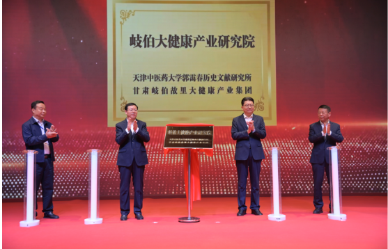 推介會(huì)舉行了項(xiàng)目簽約儀式;趙立新、姚振杰、馮西見(jiàn)、劉毅共同為岐伯大健康產(chǎn)業(yè)研究院揭牌;甘肅岐伯故里大健康產(chǎn)業(yè)集團(tuán)品牌總監(jiān)陳利軍發(fā)布了岐伯故里系列康養(yǎng)產(chǎn)品。