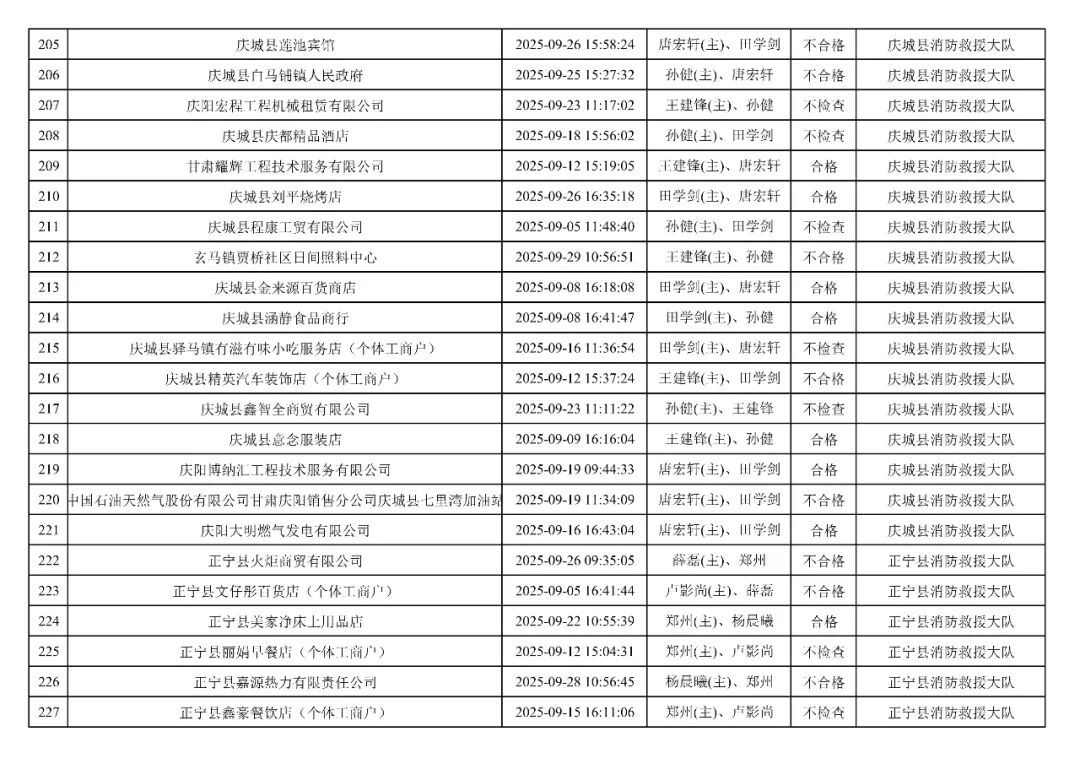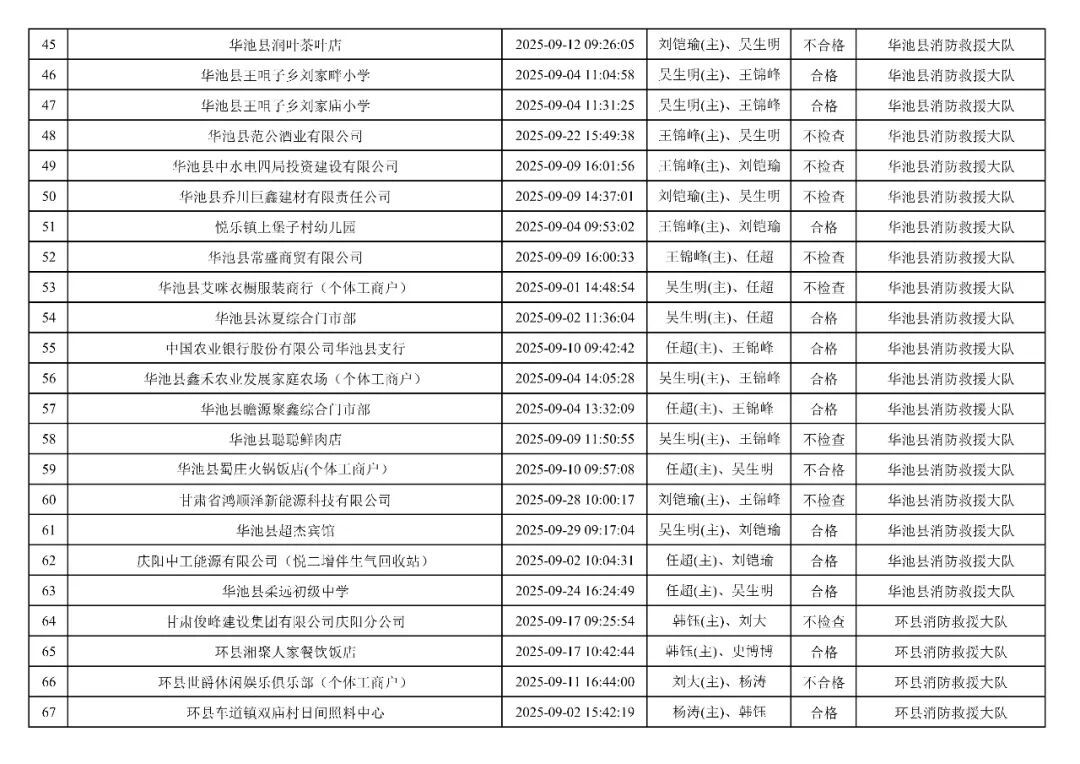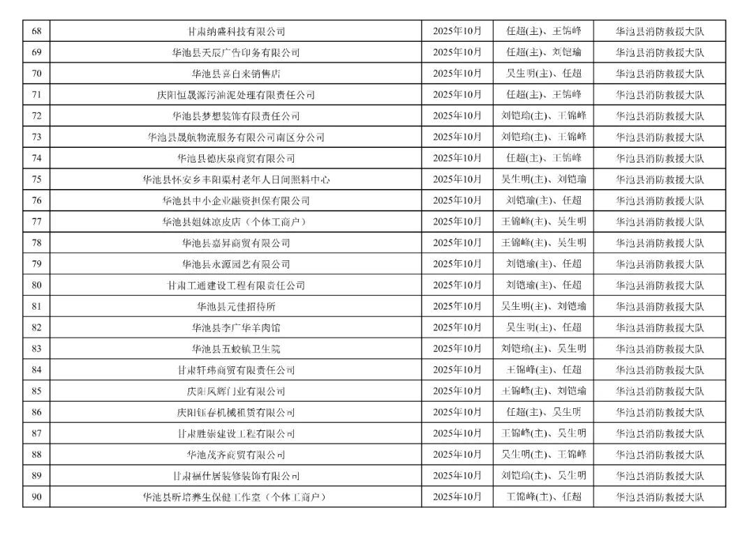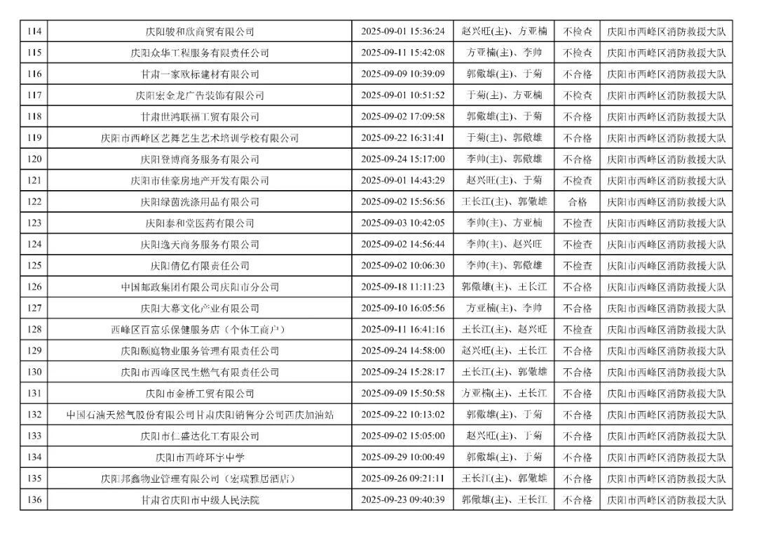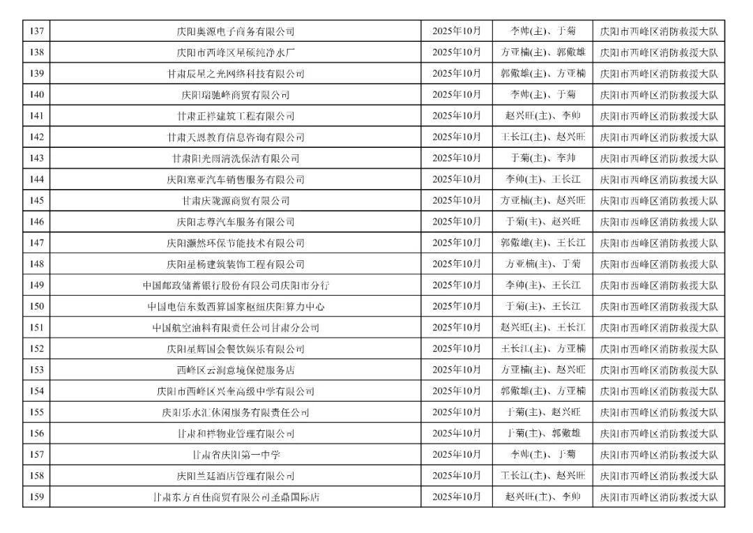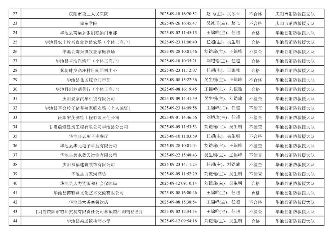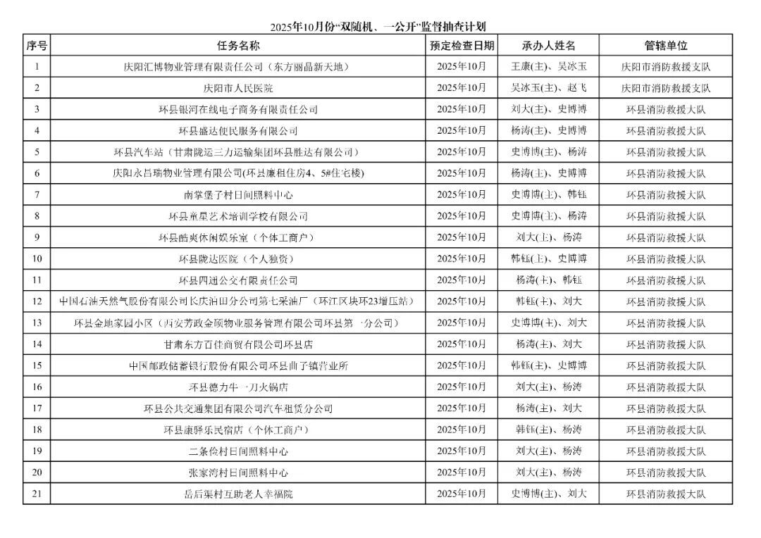 為貫徹落實《消防救援局關(guān)于全面推行“雙隨機、一公開”消防監(jiān)管工作的通知》(應(yīng)急消〔2019〕241號),認真組織實施“雙隨機、一公開”消防監(jiān)管工作,現(xiàn)將2025年9月份“雙隨機、一公開”消防監(jiān)督檢查結(jié)果及10月份監(jiān)督抽查計劃公示如下:
