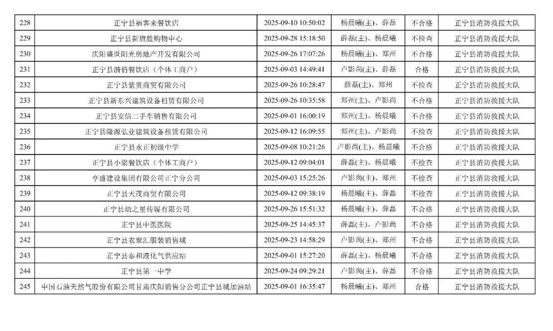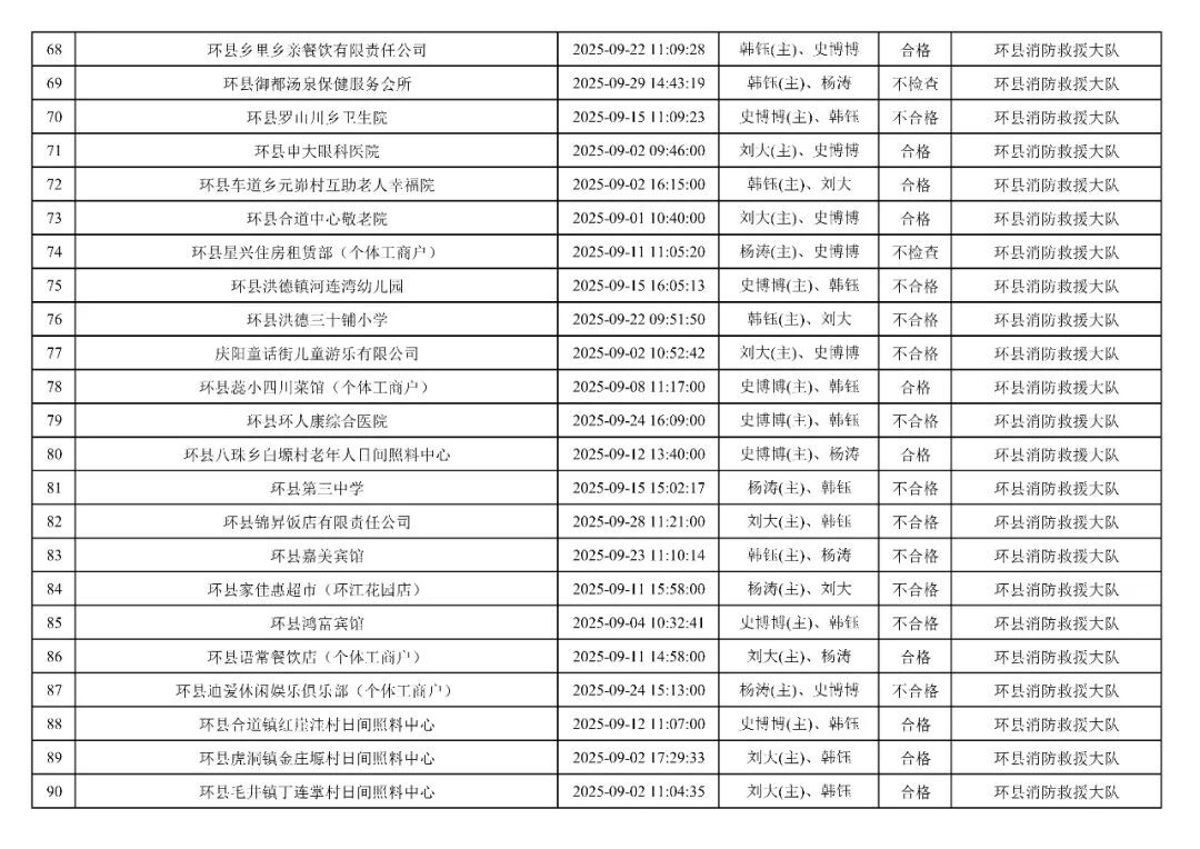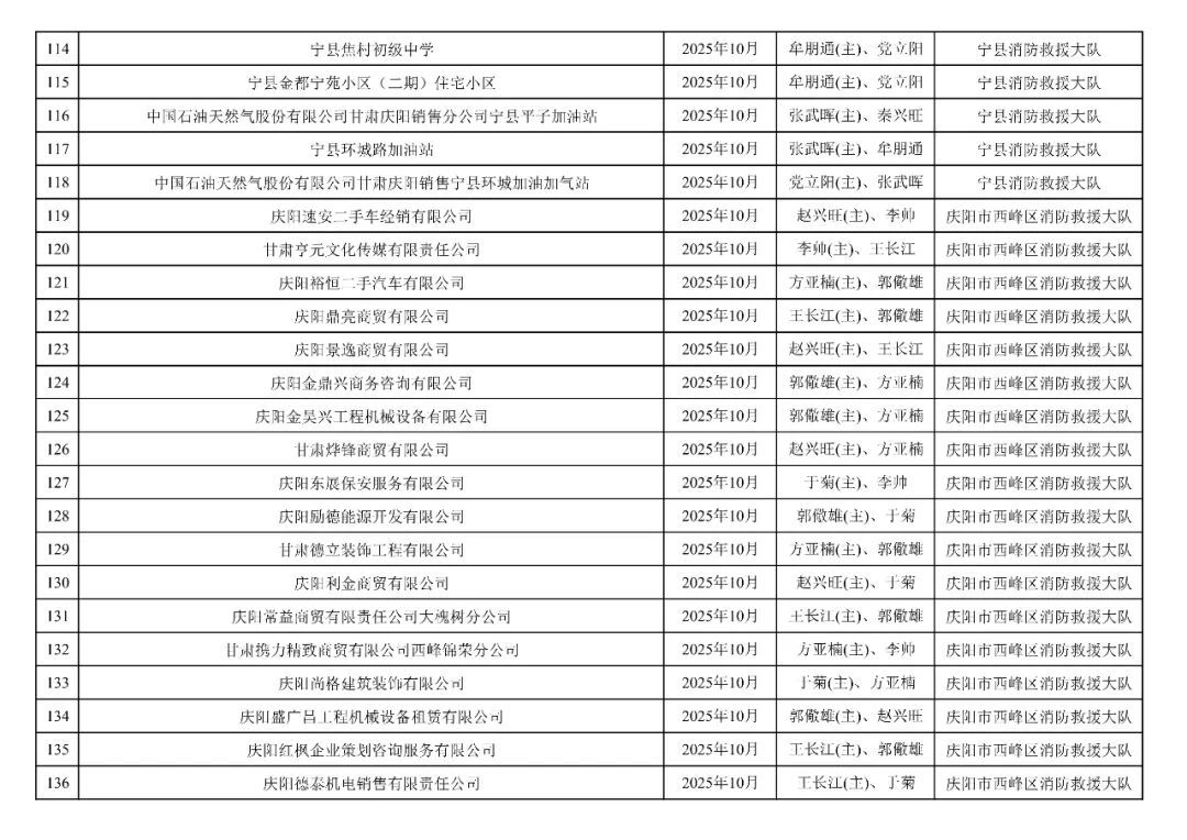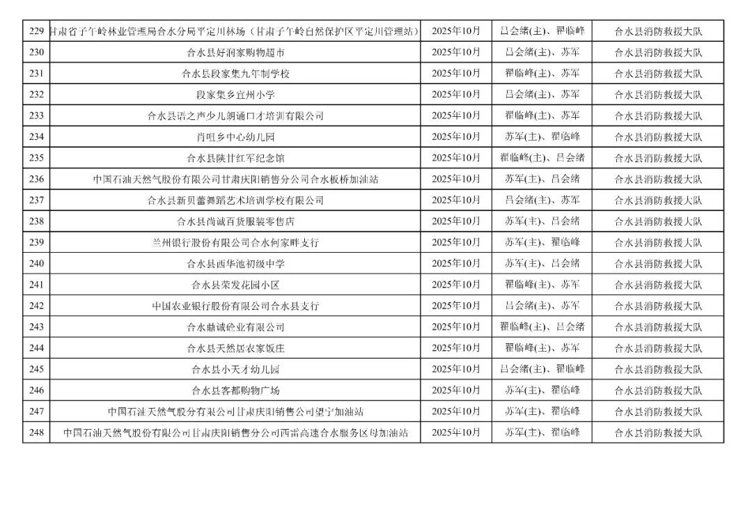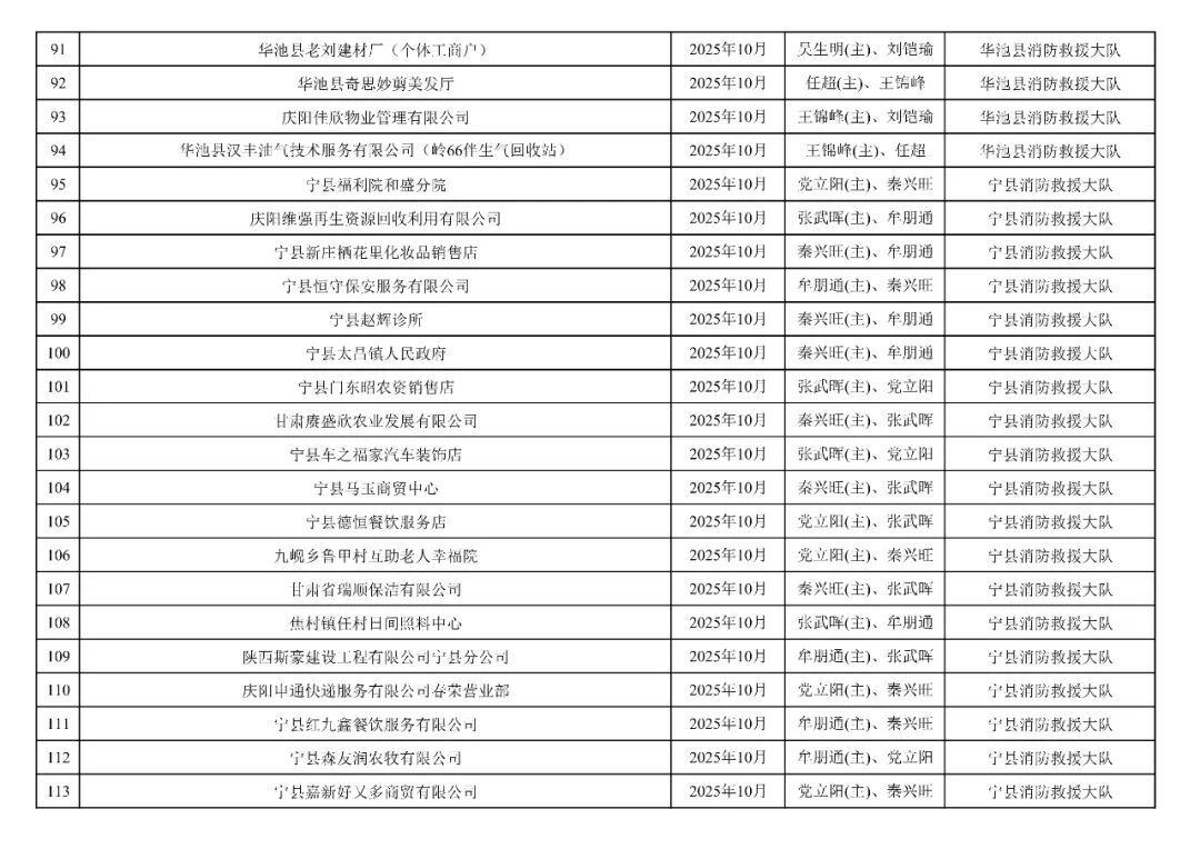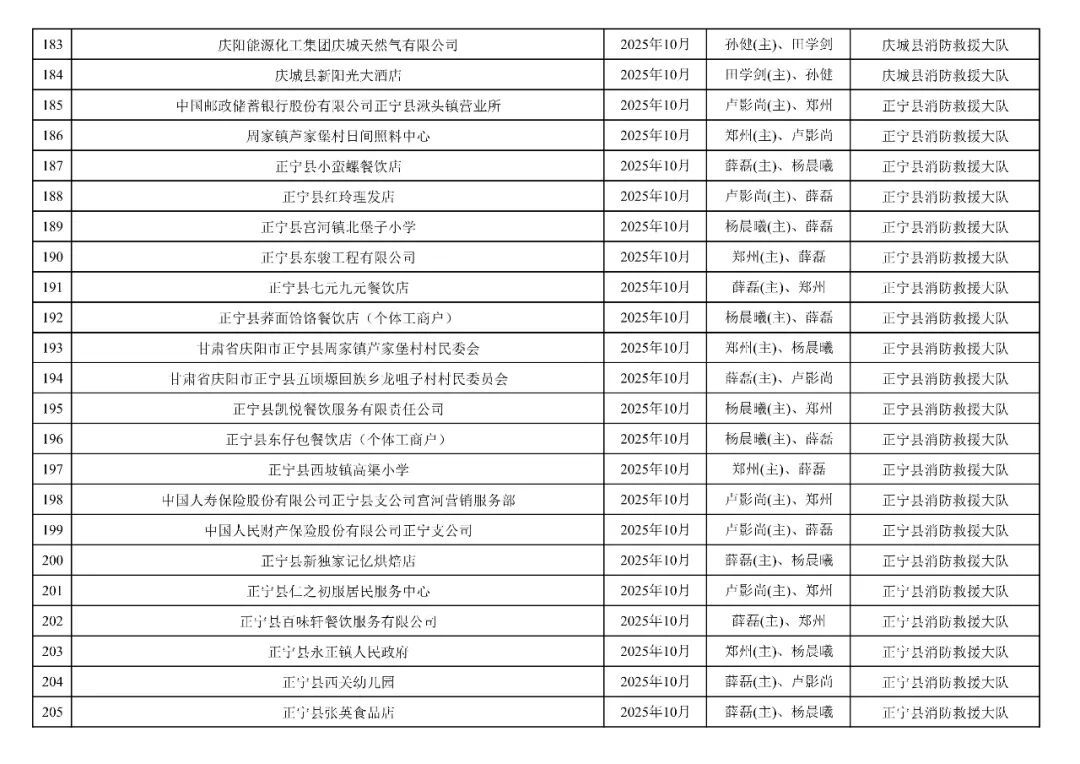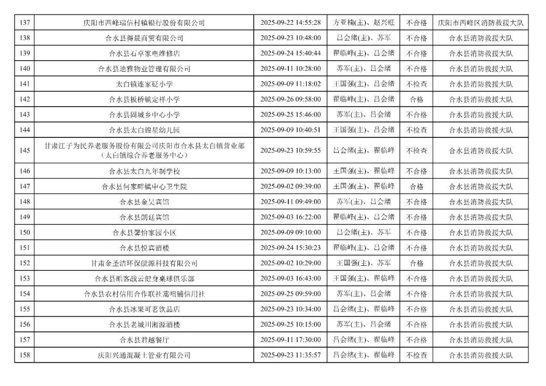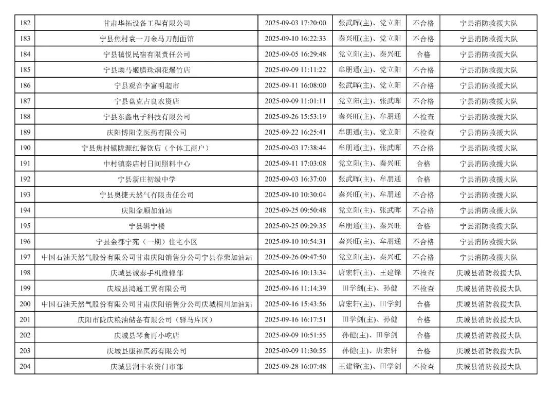 為貫徹落實《消防救援局關(guān)于全面推行“雙隨機、一公開”消防監(jiān)管工作的通知》(應(yīng)急消〔2019〕241號),認真組織實施“雙隨機、一公開”消防監(jiān)管工作,現(xiàn)將2025年9月份“雙隨機、一公開”消防監(jiān)督檢查結(jié)果及10月份監(jiān)督抽查計劃公示如下: