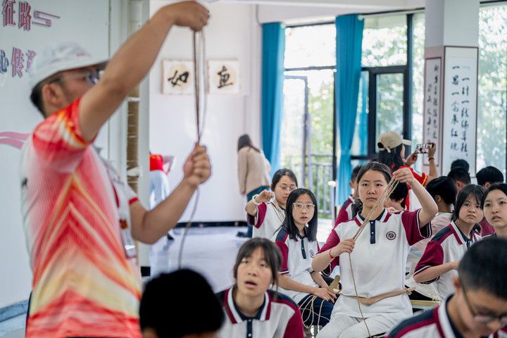 2025年5月12日,云南省昭通市威信縣第一中學(xué)學(xué)生在大屏上紅色研學(xué)實(shí)踐基地體驗(yàn)編織草鞋。200余名學(xué)生在紅色研學(xué)實(shí)踐基地親手編織草鞋、制作蠟染,并參觀了扎西會(huì)議舊址、紅軍長(zhǎng)征過云南情景體驗(yàn)館,在實(shí)踐互動(dòng)中重溫紅色革命歷史。威信縣立足紅色文化資源優(yōu)勢(shì),先后建成扎西會(huì)議紀(jì)念館、紅軍長(zhǎng)征標(biāo)語館等紅色文化展館,以舊址遺跡為“教室”,以文物史料為“教材”,設(shè)計(jì)開發(fā)多門精品研學(xué)課程和線路,在深入開展紅色研學(xué)系列活動(dòng)中傳承紅色基因。