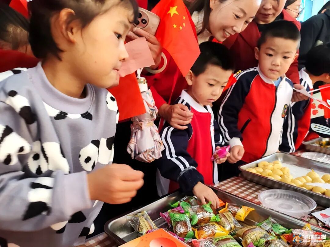 在熱鬧的戶外游戲中,孩子和家長(zhǎng)們共同聆聽革命事跡、一起積極參與飛奪瀘定橋、猜燈謎等活動(dòng),用所得的游戲幣兌換“憶苦思甜餐” 。孩子們?cè)谕骠[與創(chuàng)作中,既摸到了中秋的團(tuán)圓溫度,又激發(fā)了孩子們的愛國(guó)熱情。