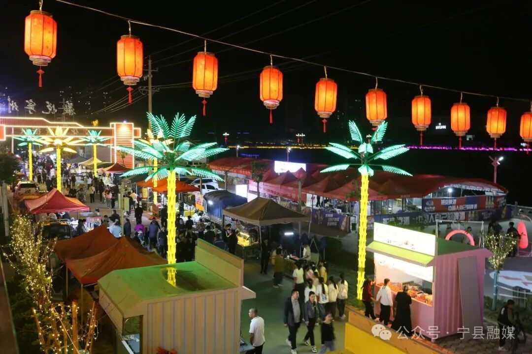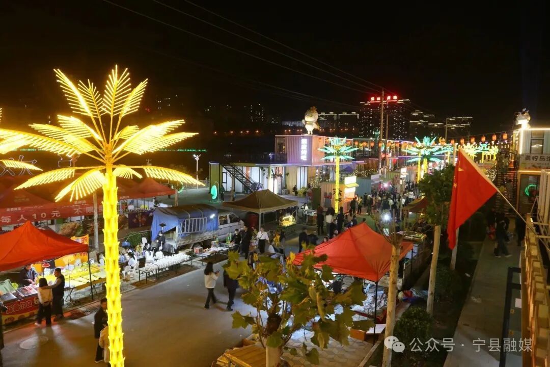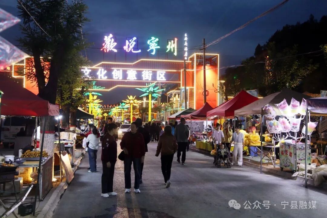 與此同時(shí),街區(qū)另一側(cè)的夜市也迎來(lái)了它最熱鬧的時(shí)刻。各色美食攤位前香氣四溢,地方特色小吃、精致甜點(diǎn)、創(chuàng)意飲品琳瑯滿目,令人食指大動(dòng)。游客們穿梭其間,或品嘗美味,或挑選心儀的手工藝品,孩子們手持發(fā)光的玩具嬉笑追逐,勾勒出一幅充滿煙火氣的動(dòng)人畫卷。傳統(tǒng)與潮流在此交匯,歷史與現(xiàn)代在此共鳴,充分展現(xiàn)了寧縣文旅融合發(fā)展的蓬勃生機(jī)與無(wú)限活力。