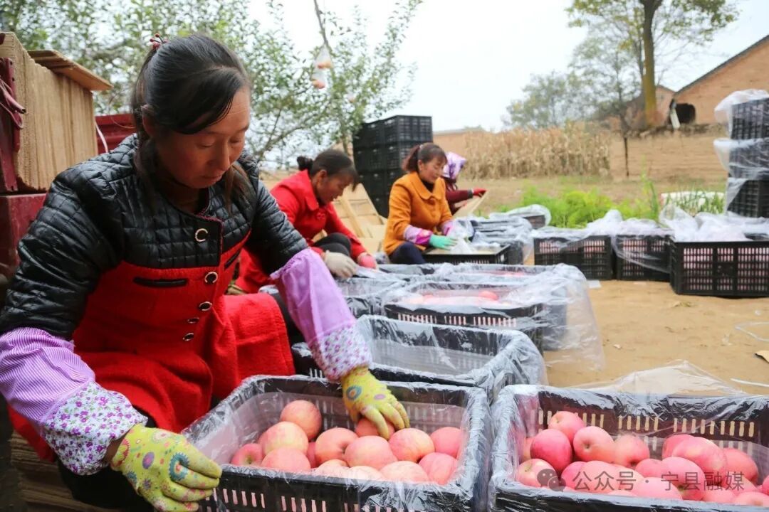 平子鎮(zhèn)鞏家村群眾正在裝筐分揀晚熟蘋果