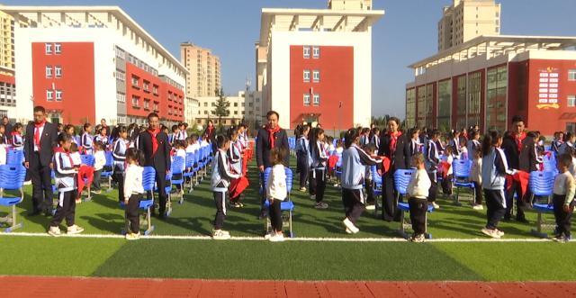合水縣委副書記、縣少工委名譽主任張宏斌出席儀式,團(tuán)縣委、縣少工委、三里店小學(xué)少工委負(fù)責(zé)人以及三里店小學(xué)少先隊輔導(dǎo)員和少先隊員共450余人參加儀式。