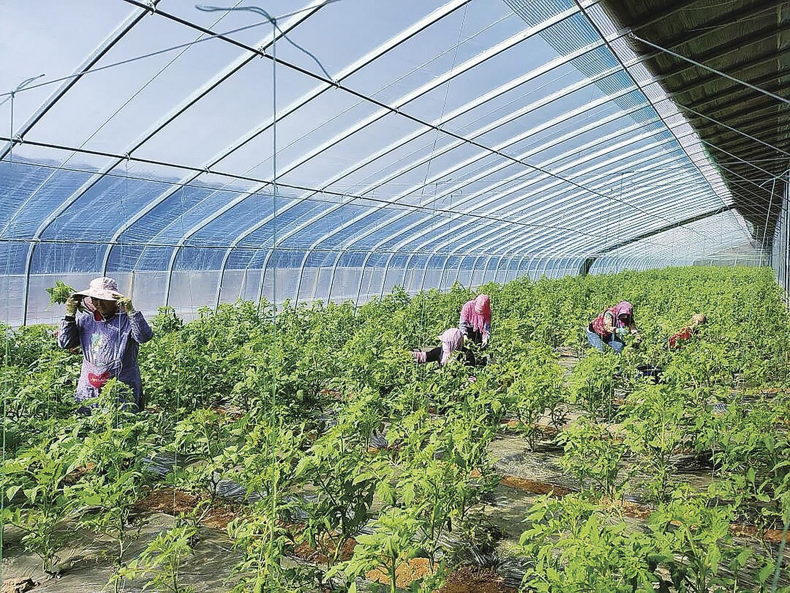 群眾在中原鄉(xiāng)武亭-殿王設(shè)施蔬菜示范園進行田間管理。 慶陽融媒記者 張凡 攝