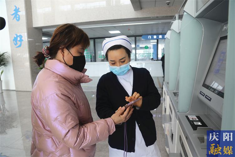 醫(yī)護(hù)人員指導(dǎo)患者用APP操作就診流程。