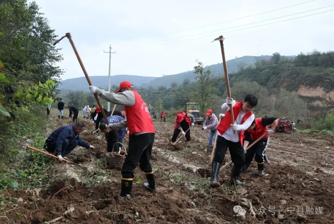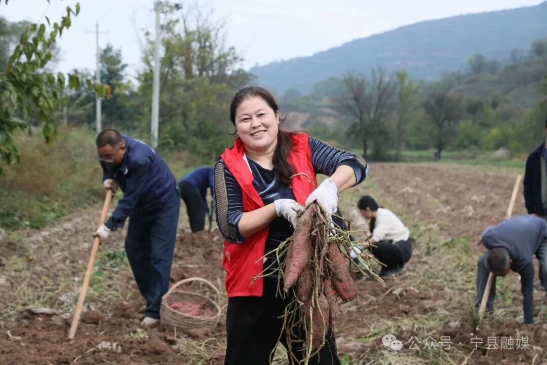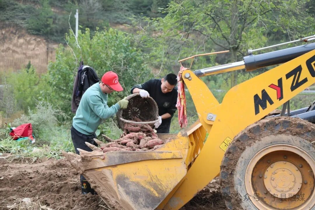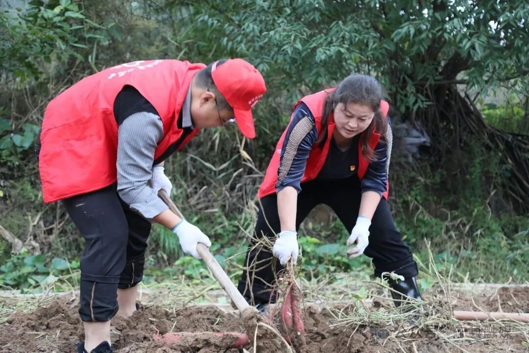 雨剛停歇,春榮鎮(zhèn)35名鎮(zhèn)干部便踩著泥濘,深一腳淺一腳地走進(jìn)王臺(tái)村的村集體經(jīng)濟(jì)紅薯地。他們挽起褲腳、俯身彎腰,迅速組成了一支特殊的搶收隊(duì)伍。大家小心翼翼?yè)荛_(kāi)濕重的泥土,雙手從泥濘中捧出一個(gè)個(gè)沉甸甸的紅薯,輕輕拂去表面的泥水,利落地裝筐、傳遞、裝車,隨即由鏟車運(yùn)至分揀場(chǎng)。緊接著,晾曬、分揀、裝箱等環(huán)節(jié)有條不紊地展開(kāi),一條高效運(yùn)轉(zhuǎn)的“流水線”在田間地頭悄然形成。