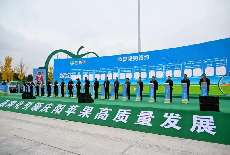 開(kāi)幕式上,浙江大學(xué)CARD中國(guó)農(nóng)業(yè)品牌研究中心發(fā)布慶陽(yáng)蘋果品牌價(jià)值成長(zhǎng)報(bào)告,西北農(nóng)林科技大學(xué)蘋果研究中心發(fā)布慶陽(yáng)新優(yōu)蘋果品質(zhì)鑒評(píng)結(jié)果,果企果商代表作了分享發(fā)言。中國(guó)品牌雜志社與慶陽(yáng)市果業(yè)發(fā)展中心簽署慶陽(yáng)國(guó)際蘋果產(chǎn)業(yè)與品牌協(xié)作中心合作共建協(xié)議,中國(guó)聯(lián)合國(guó)采購(gòu)促進(jìn)會(huì)與甘肅居立生態(tài)農(nóng)業(yè)科技有限責(zé)任公司簽署慶陽(yáng)蘋果國(guó)際公共采購(gòu)服務(wù)平臺(tái)合作共建協(xié)議,中國(guó)農(nóng)業(yè)科學(xué)院果樹(shù)研究所與甘肅居立蘋果苗木繁育有限公司簽署國(guó)家落葉果樹(shù)脫毒中心慶陽(yáng)蘋果無(wú)病毒苗木專家工作站共建協(xié)議。慶陽(yáng)市果企果商、果業(yè)合作社等與北京、廣東、重慶等地果企果商和大宗市場(chǎng)大宗采購(gòu)商現(xiàn)場(chǎng)簽約購(gòu)銷協(xié)議20份,大會(huì)期間帶動(dòng)線下線上簽約訂購(gòu)協(xié)議120份,訂購(gòu)蘋果60.06萬(wàn)噸,預(yù)計(jì)簽約金額55億元。