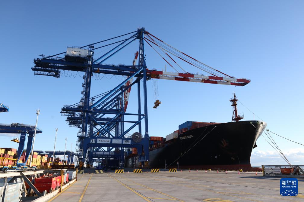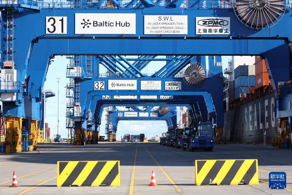 10月19日,在波蘭北部格但斯克港,從中國寧波舟山港出發(fā)的中歐北極快航航線首艘貨船進行裝卸工作。新華社記者 崔力 攝