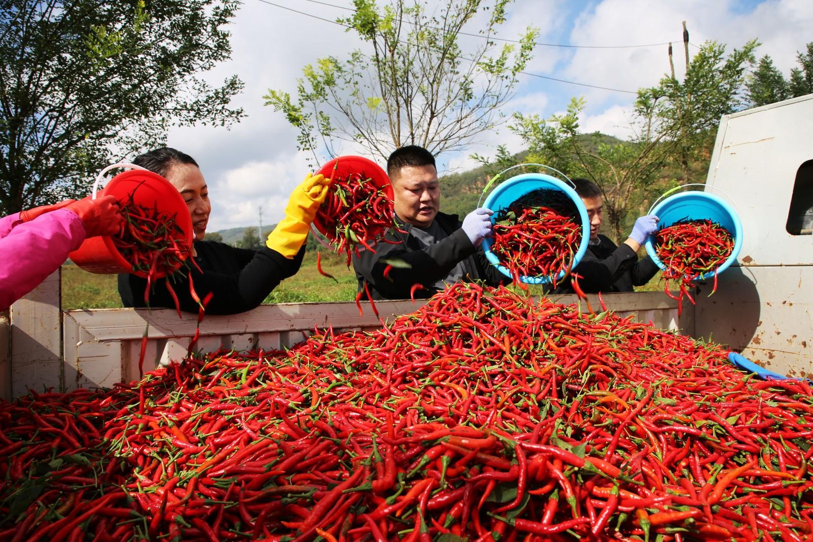 寧縣湘樂鎮(zhèn)龐川村的辣椒喜獲豐收