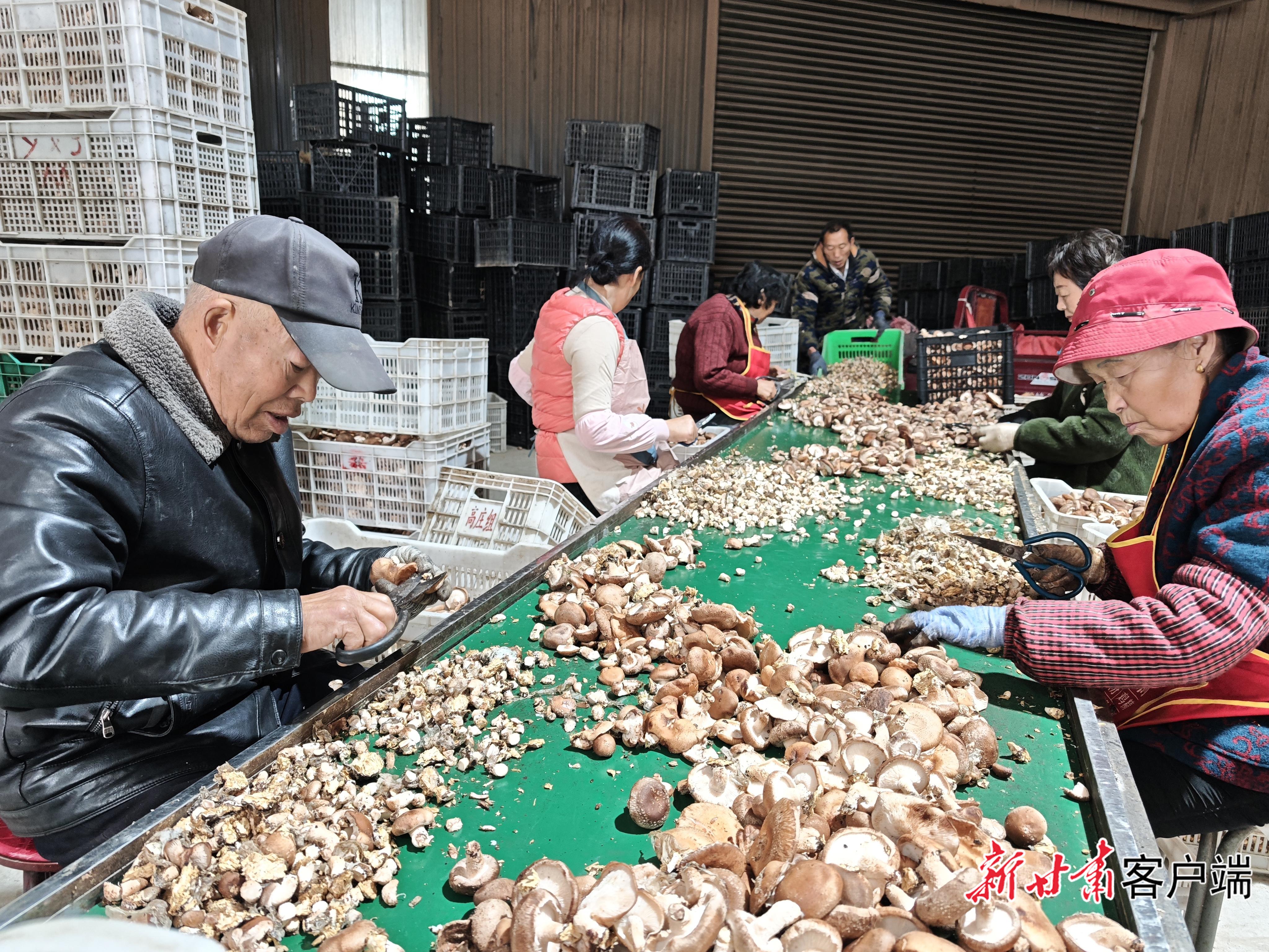 村民正在修剪香菇柄。新甘肅·甘肅日報記者張富貴 攝
