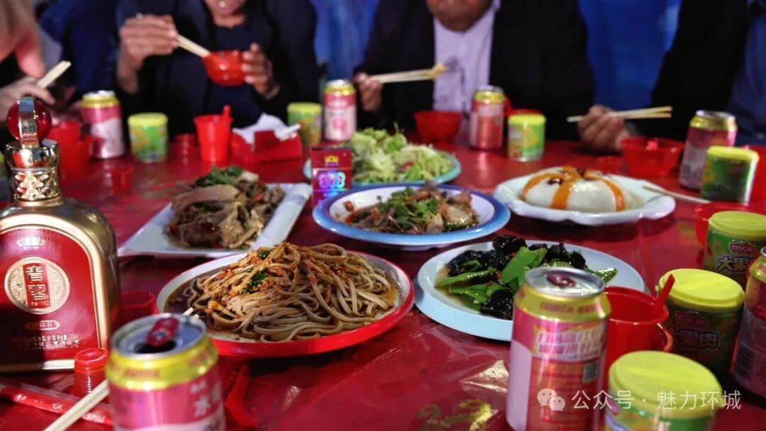 婚禮現(xiàn)場,處處彰顯著文明節(jié)儉的新風(fēng)。紅雙喜字貼在白墻上格外醒目,餐桌上,香煙、酒水嚴格遵循每包不超15 元、每瓶80元以下的標準,一道道環(huán)縣特色美食擺得滿滿當(dāng)當(dāng) —— 筋道的饸饹面澆上濃郁的臊子湯,鮮嫩的豬血燴豆腐飄著蔥花,金黃酥脆的油餅、軟糯香甜的雜糧饃饃,這些充滿鄉(xiāng)土氣息的美食,不僅讓賓客們品嘗到了地道的家鄉(xiāng)味道,更傳遞出節(jié)儉質(zhì)樸的新風(fēng)尚。