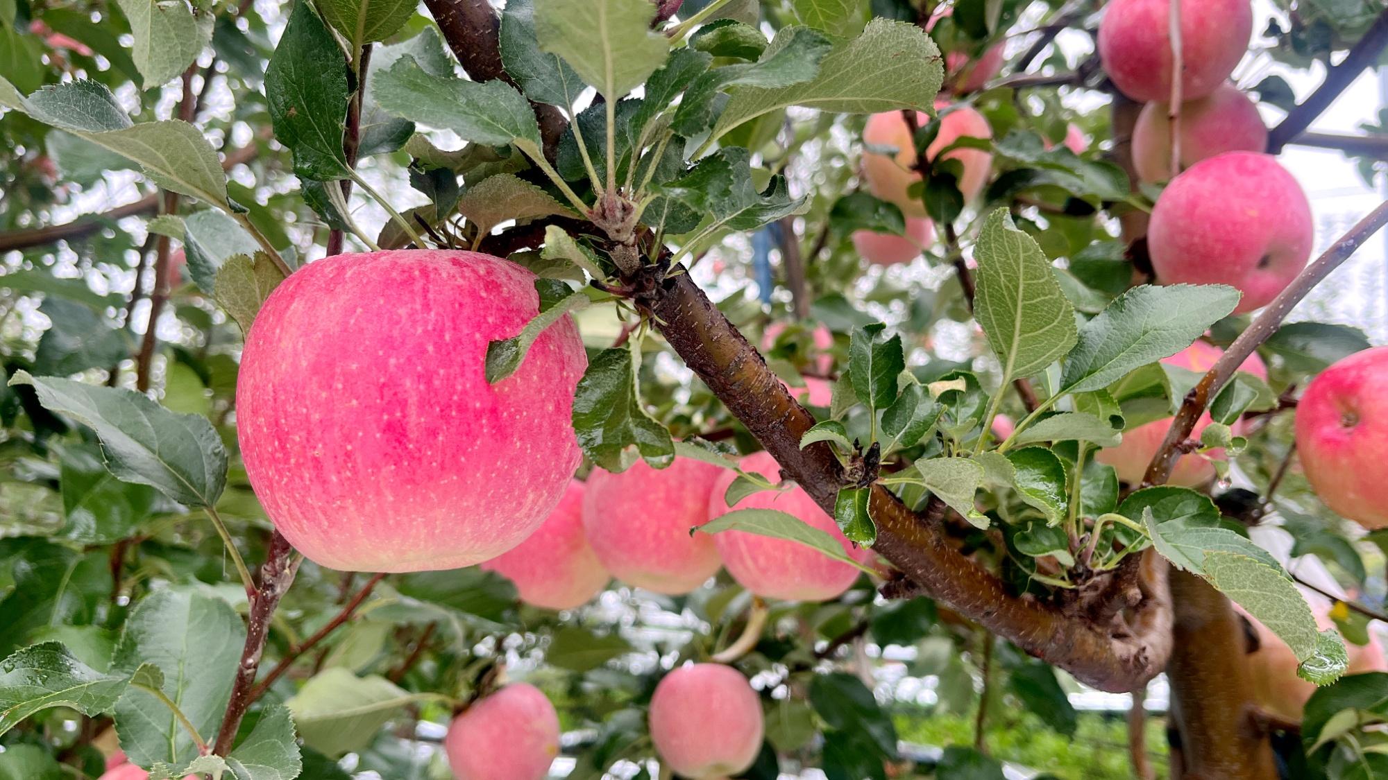 “瑞陽(yáng)和富士現(xiàn)已成熟,正在采收,10月下旬瑞雪也可采摘。今年蘋果畝產(chǎn)約4000斤,總產(chǎn)值達(dá)400多萬元。用工高峰期,可為本村及周邊群眾提供80到100個(gè)就業(yè)崗位?!焙献魃缃?jīng)理何治禮說。
