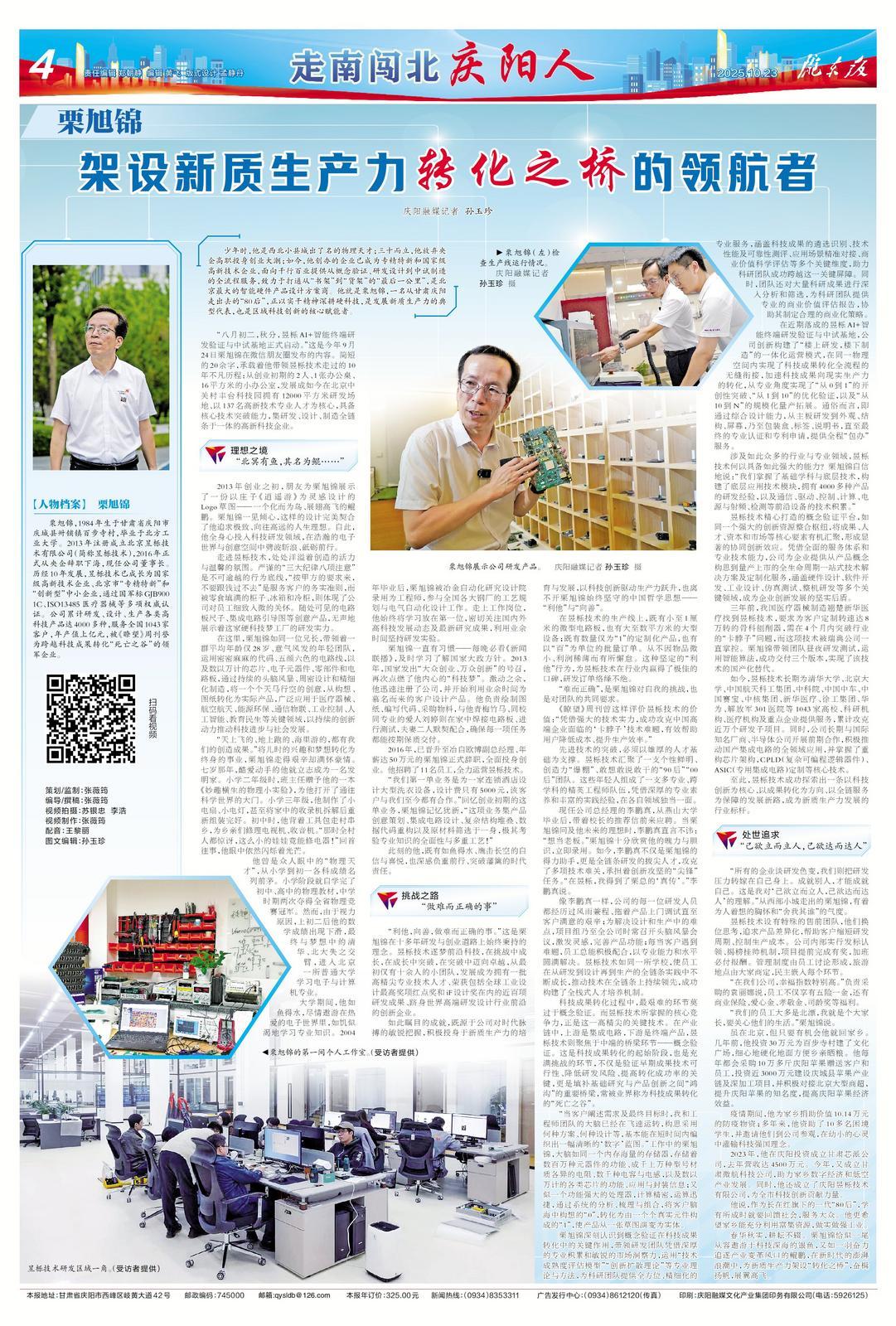 春華秋實(shí),耕耘不輟。栗旭錦恰似一尾從容遨游于科技深海的銀魚,又如一羽奮力追逐產(chǎn)業(yè)變革風(fēng)口的鯤鵬,在新時(shí)代的澎湃浪潮中,為新質(zhì)生產(chǎn)力架設(shè)“轉(zhuǎn)化之橋”,奮楫揚(yáng)帆,展翼高飛。