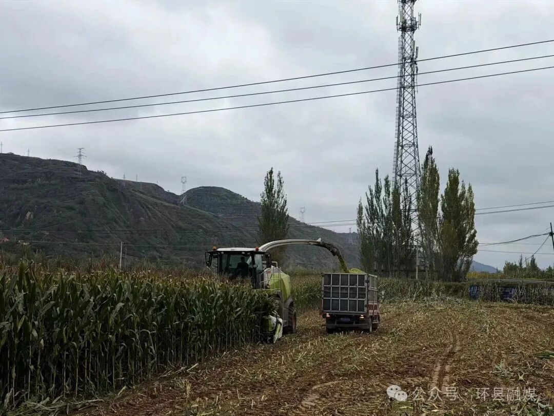 金秋時(shí)節(jié),環(huán)縣各鄉(xiāng)鎮(zhèn)的田間地頭一派繁忙景象。大型青貯飼草收割機(jī)在田壟間穿梭,轟鳴聲中,玉米植株被快速切割、粉碎,順著輸送管傾瀉入等候的運(yùn)輸車,青綠的碎料散發(fā)著新鮮草木香,勾勒出豐收的圖景。