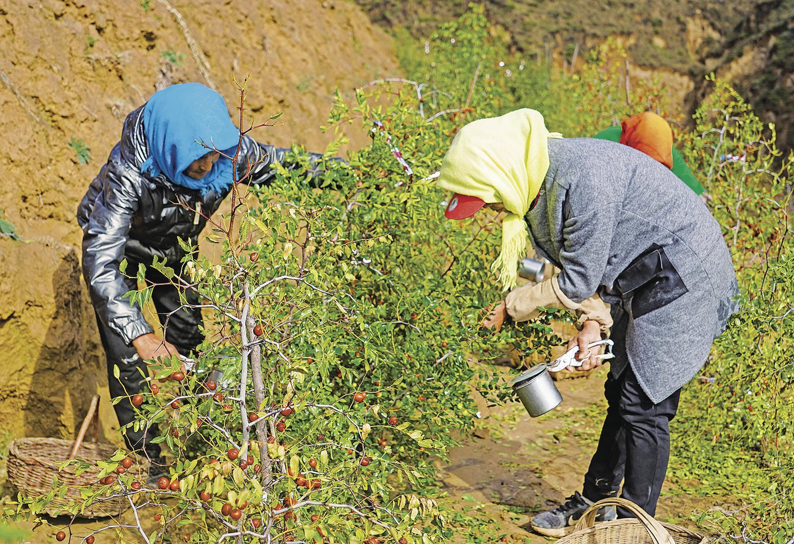 務工人員在采摘酸棗。 通訊員 劉紅霞 攝