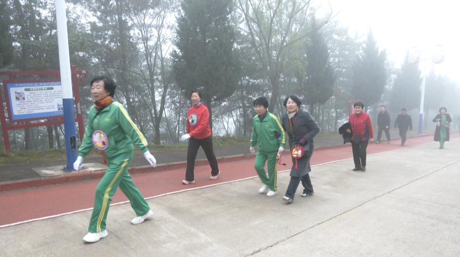 在徒步登高環(huán)節(jié)中,參與者們沿著森林公園步道結(jié)伴而行,大家一邊欣賞沿途層林盡染的秋景,一邊交流著日常的點滴。干部職工始終陪伴在老人們身邊,攙扶著行動不便的老人,整個隊伍行進得既有序又溫馨。