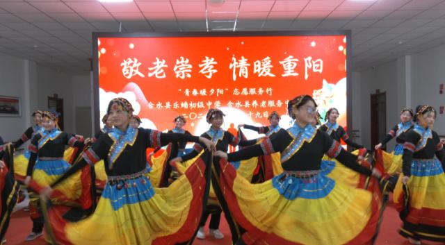 在書法送祝福環(huán)節(jié)中,書法愛好者們揮毫潑墨,一幅幅飽含重陽美好祝愿的字樣躍然紙上,一筆一劃都傾注著對老人們的真誠祝福。在戲曲廣場舞展演活動中,戲曲和廣場舞愛好者們身著色彩鮮亮的演出服裝,伴著喜慶歡快的旋律依次登場,為老人們帶來了一場精彩的視聽盛宴。在校園互動表演中,樂蟠初中的孩子們帶著純真的笑容和滿滿的心意,為老人們帶來了大合唱和舞蹈等精彩節(jié)目,并為老人捶揉肩膀、按摩手臂,一句句“爺爺奶奶重陽節(jié)快樂”,讓養(yǎng)老服務(wù)中心里處處涌動著溫情。