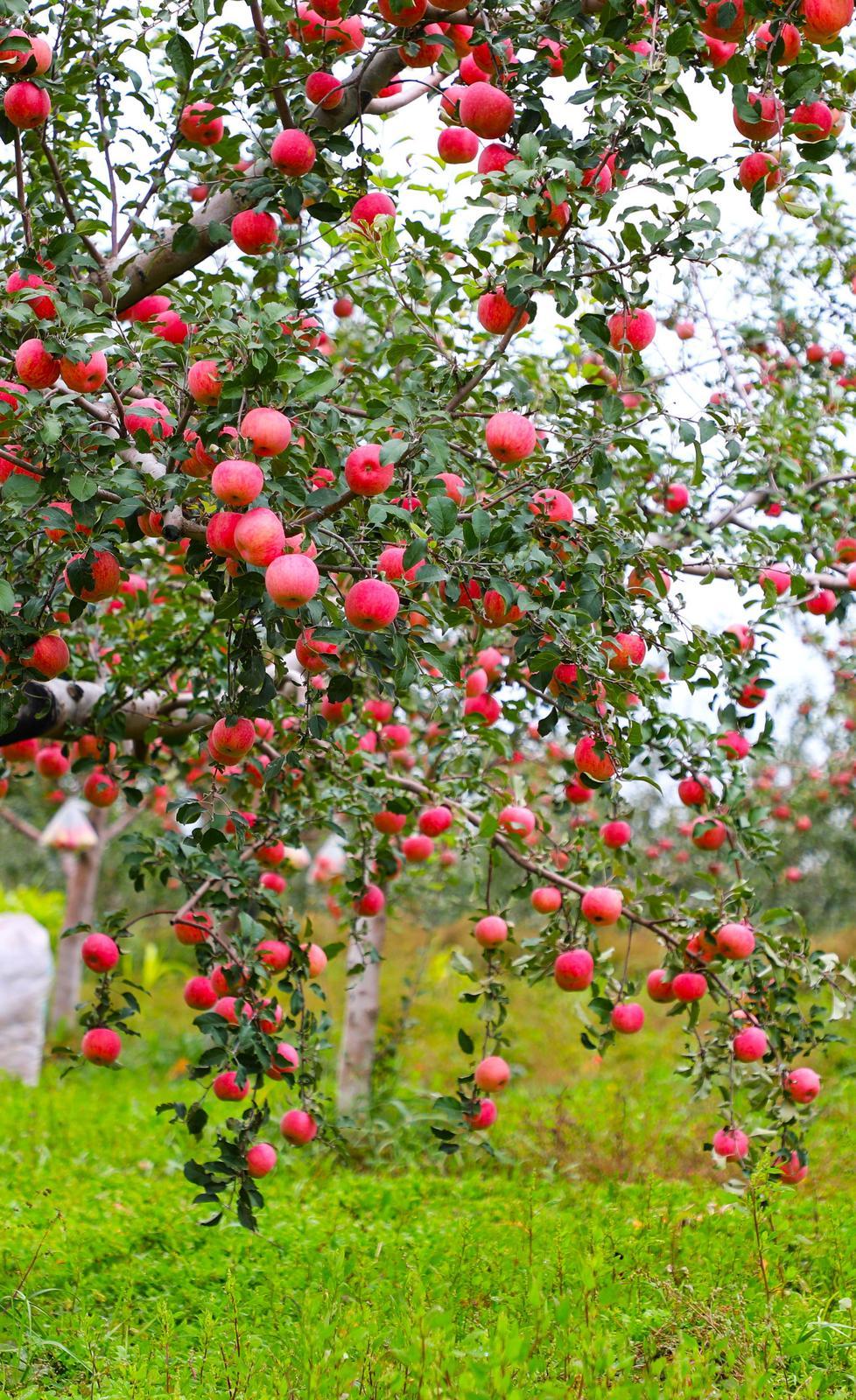 紅彤彤的蘋果掛滿枝頭。